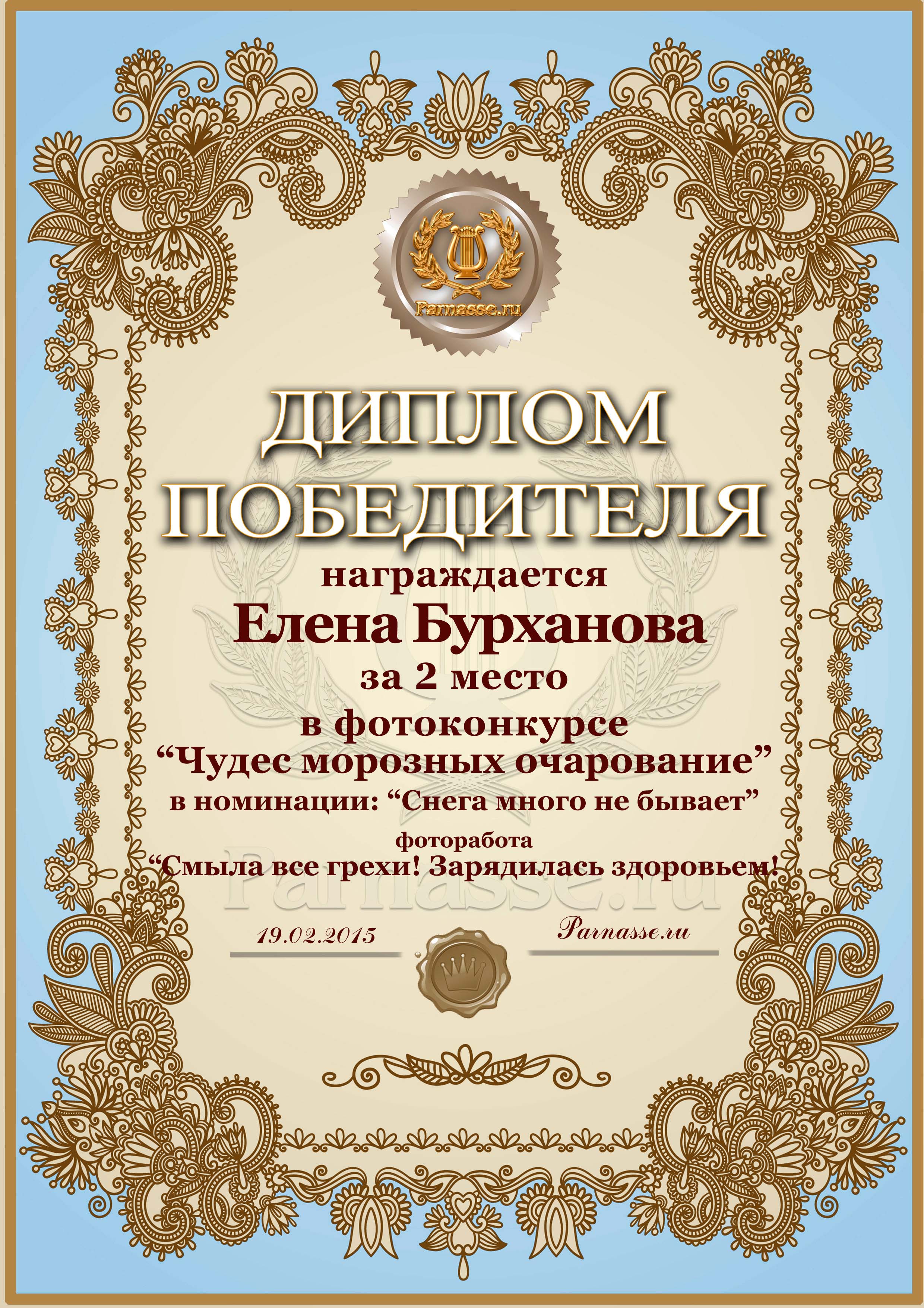Диплом за 1 место в фотоконкурсе "Чудес морозных очарование"