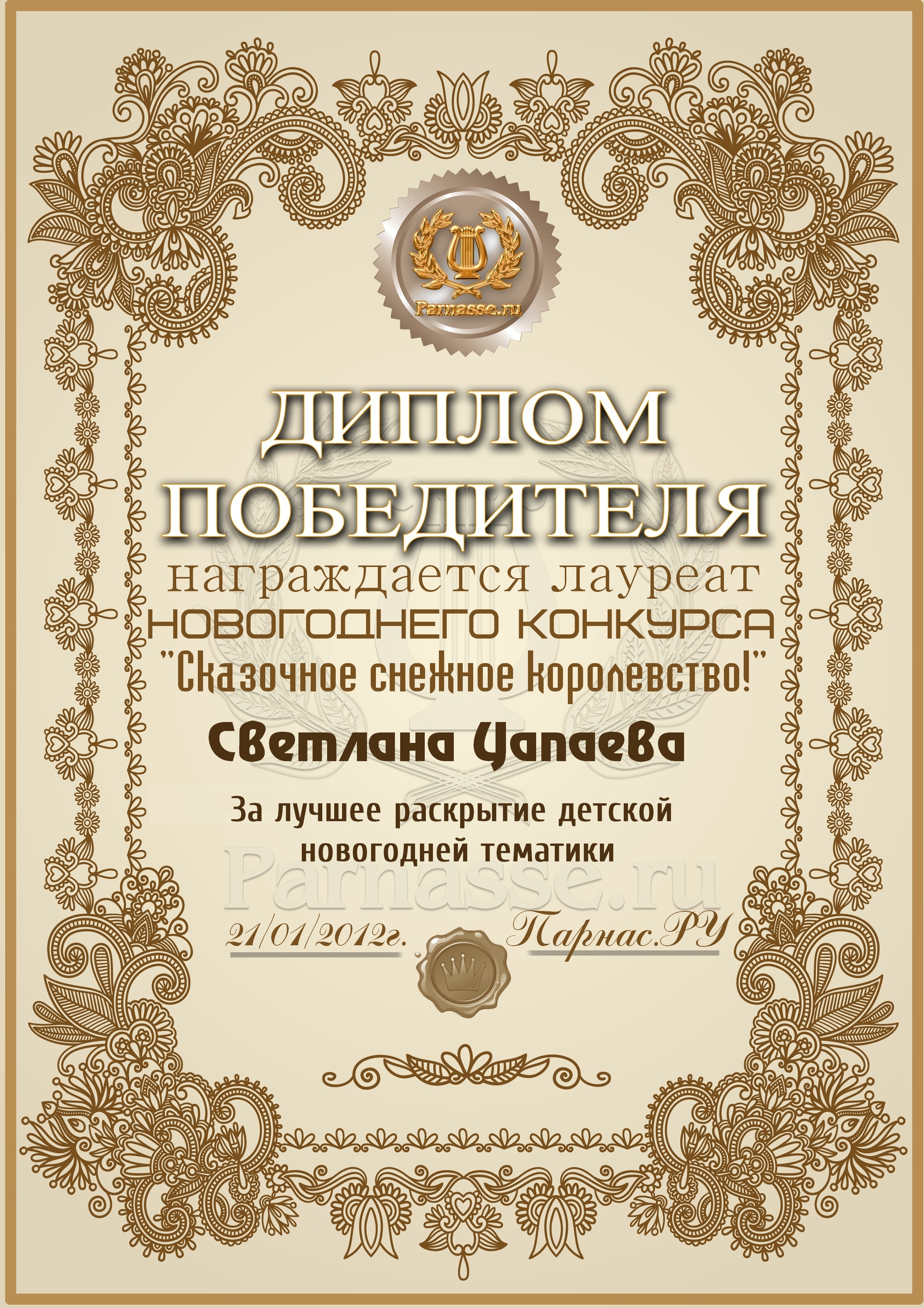 ![]() ![]() ПЕРВОЕ место в конкурсе конкурса "Сказочное снежное королевство!"