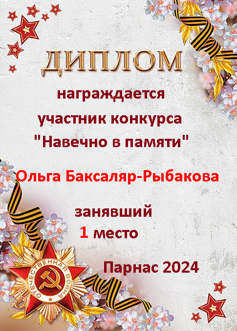 Первое место по решению Администрации и Главного судьи конкурса "Навечно в памяти"