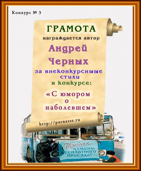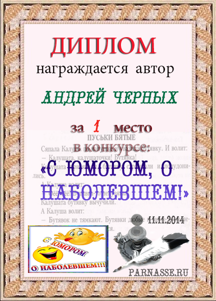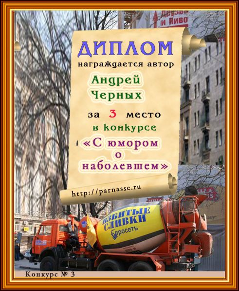 Диплом за 3 место в конкурсе "С юмором. о наболевшем!