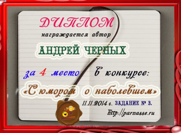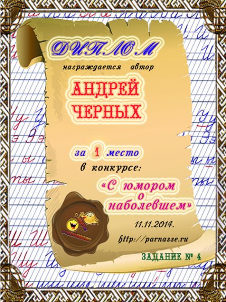 Диплом за 4 место в конкурсе "С юмором. о наболевшем!