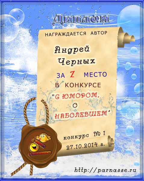 Диплом за 2 место в конкурсе " С юмором. о наболевшем"