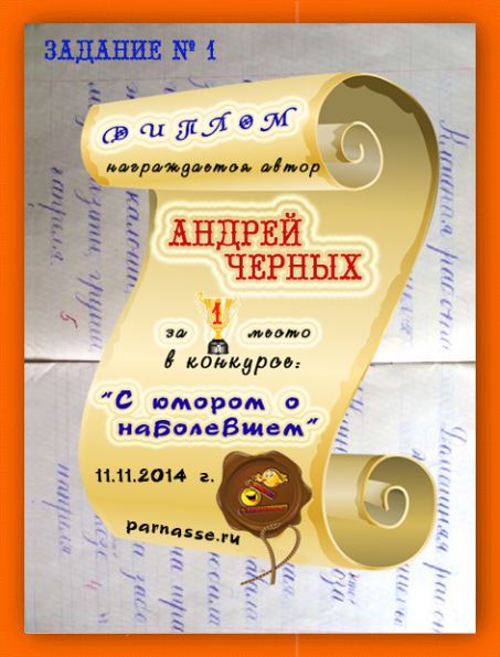 Диплом за 1 место в конкурсе "С юмором. о наболевшем!№3
