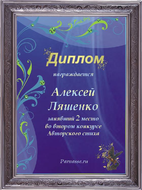 «Уважаемый Алексей, от всего сердца поздравляем Вас с ПОБЕДОЙ в Конкурсе авторского стиха!!! Муза и вдохновение, приведут Вас к новым Победам!