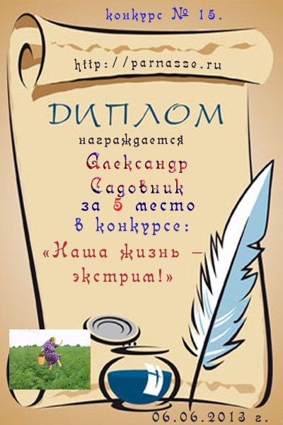 Диплом за 5 место в конкурсе № 15 «Наша жизнь – экстрим!»