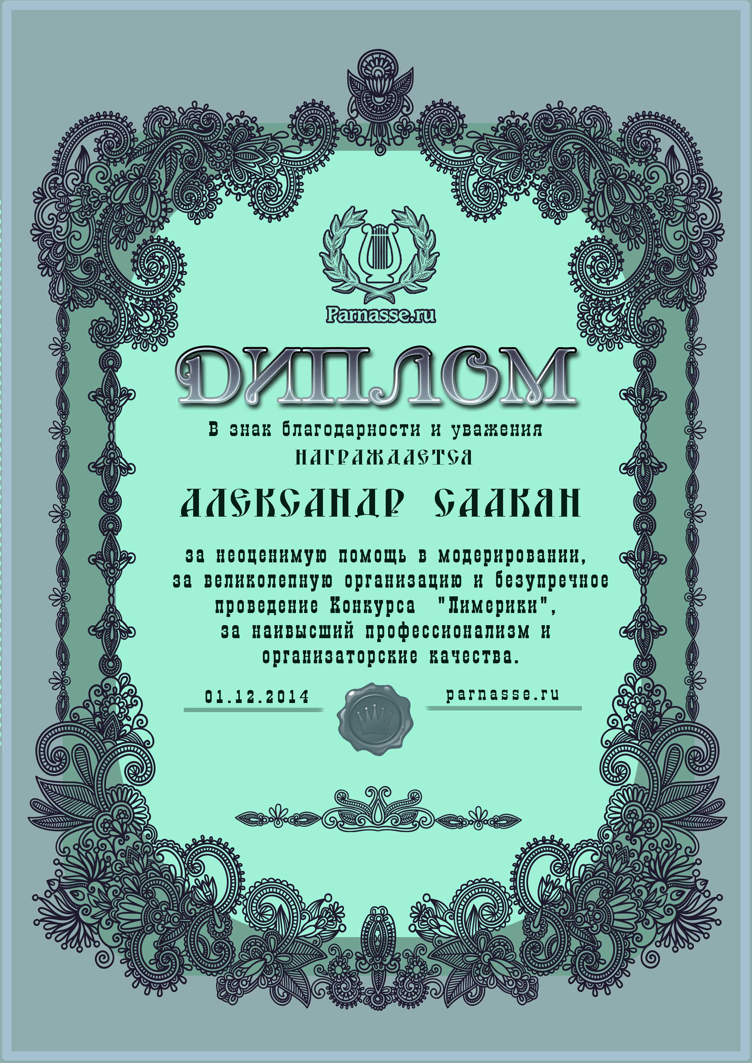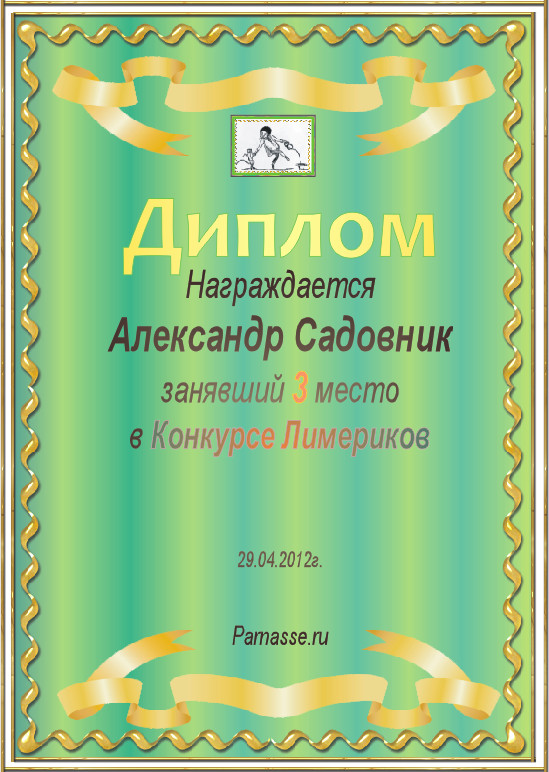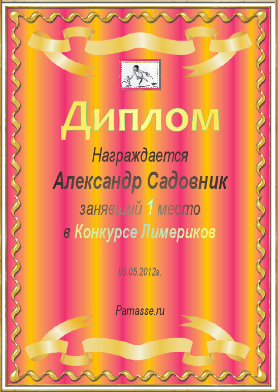 Диплом за 1 место в конкурсе лимериков №10 (06.05.2012.)