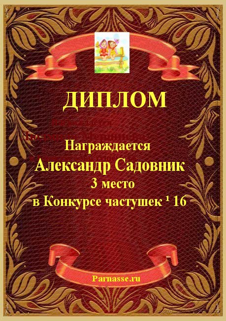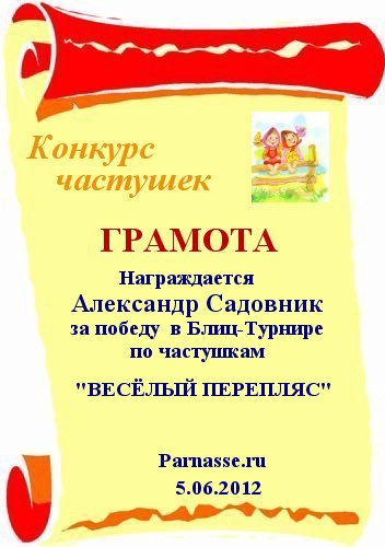 Александр, поздравляем с Победой в Блиц-Турнире по частушкам /от 5.06.2012/