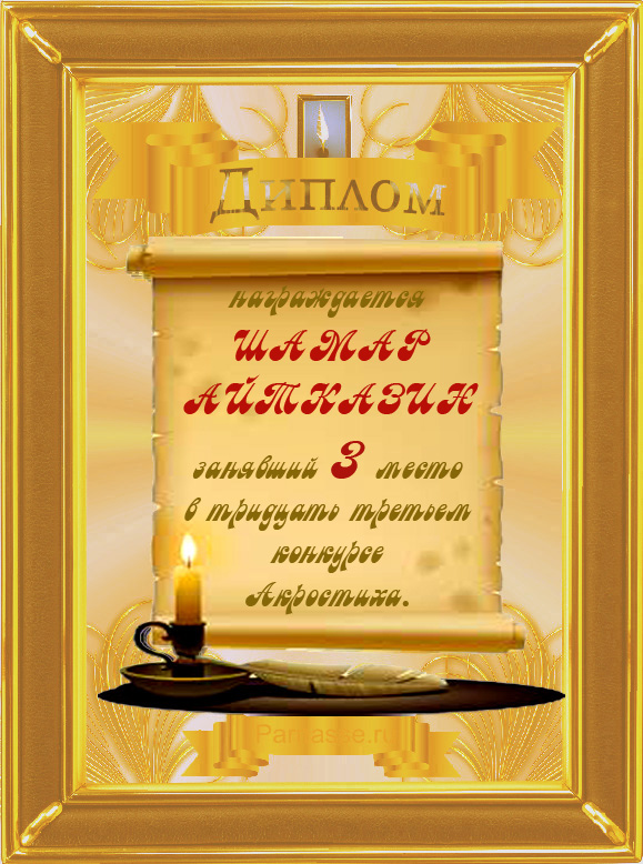 Диплом победителю в конкурсах Акростиха в связи с пятилетием конкурса Акростиха!
