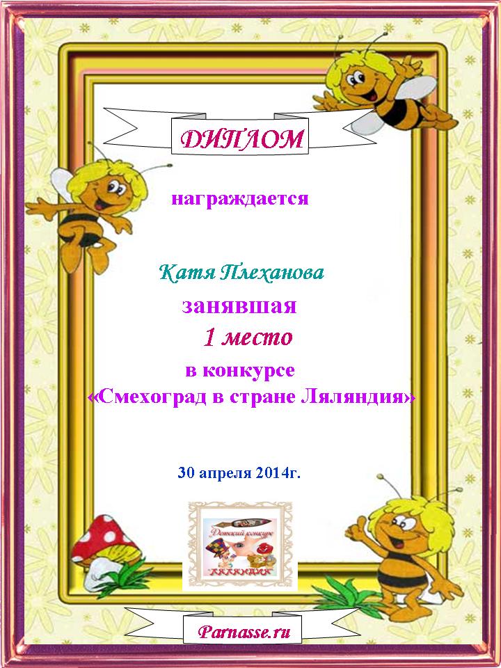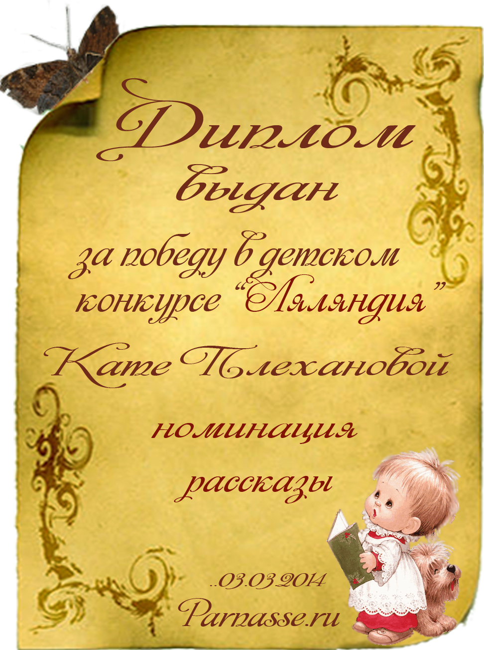 «Катя, молодчина. Поздравляю с победой в конкурсе Ляляндия, - номинация - рассказы. Старайся, и получится ещё лучше»