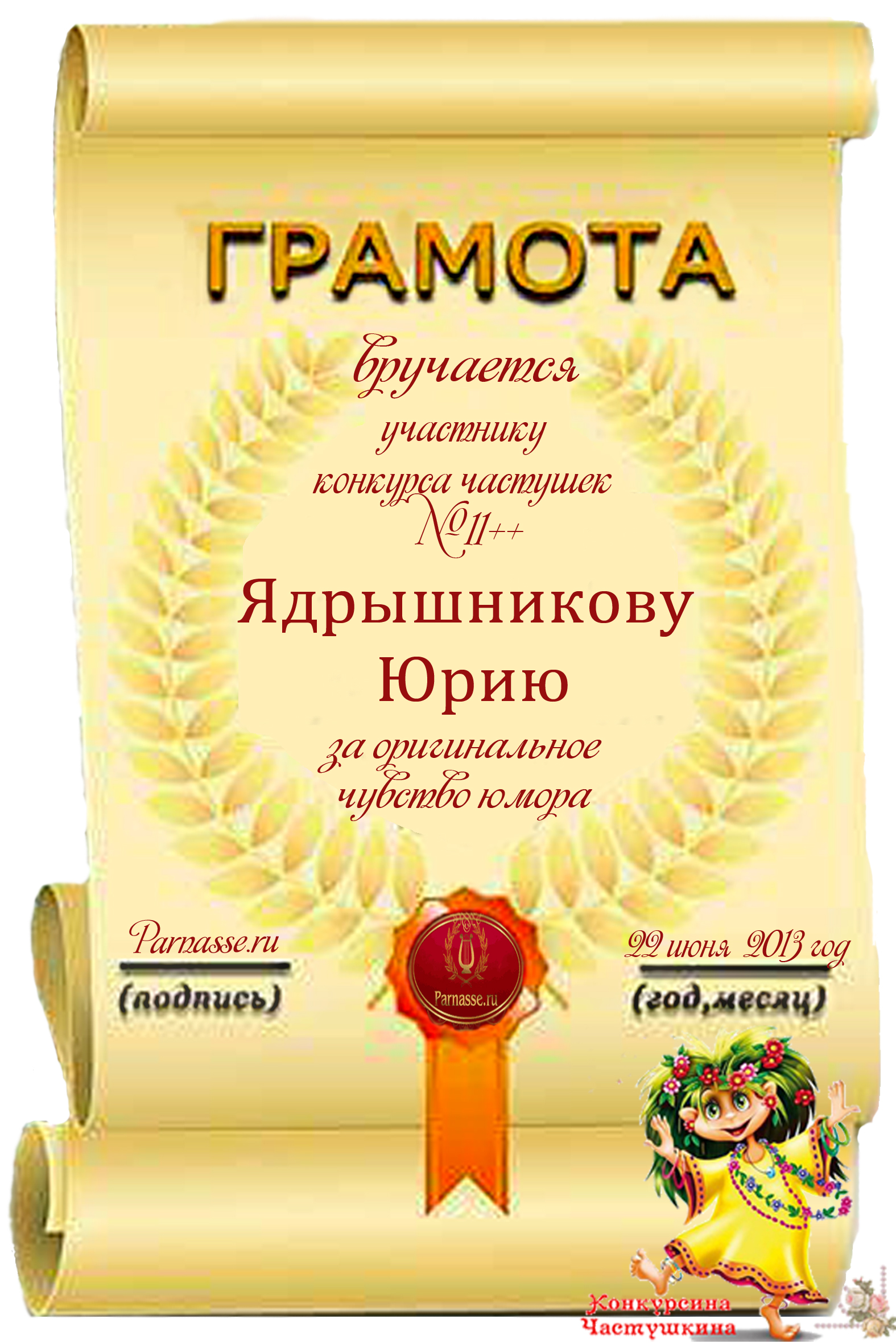 Подарок от: КОНКУРС *Друзья и Подружки УЛЁТНОЙ ЧАСТУШКИ*, 22 июня 2013: