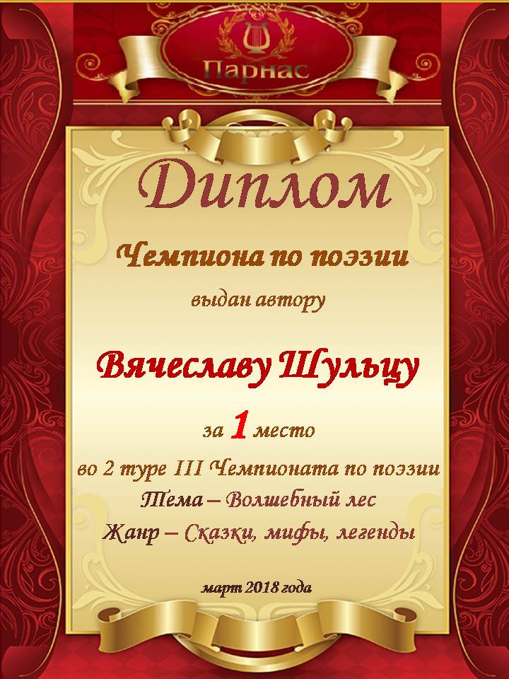 Третье место по итогам серии зимних конкурсов " Белая сказка зимы", в номинации «Поэзия». Поздравляем с прекрасной победой!