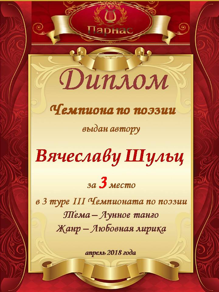 За 3 место в 3 туре III Чемпионата Поэзии