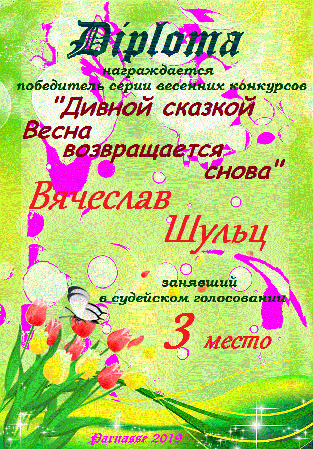 Третье место в серии весенних конкурсов "Дивной сказкой Весна возвращается снова", судейское голосование. Поздравляем с прекрасной победой!