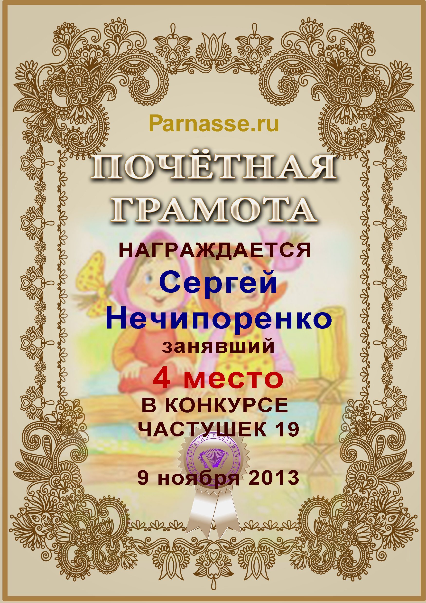 Грамота за 4е место в конкурсе частушек 19