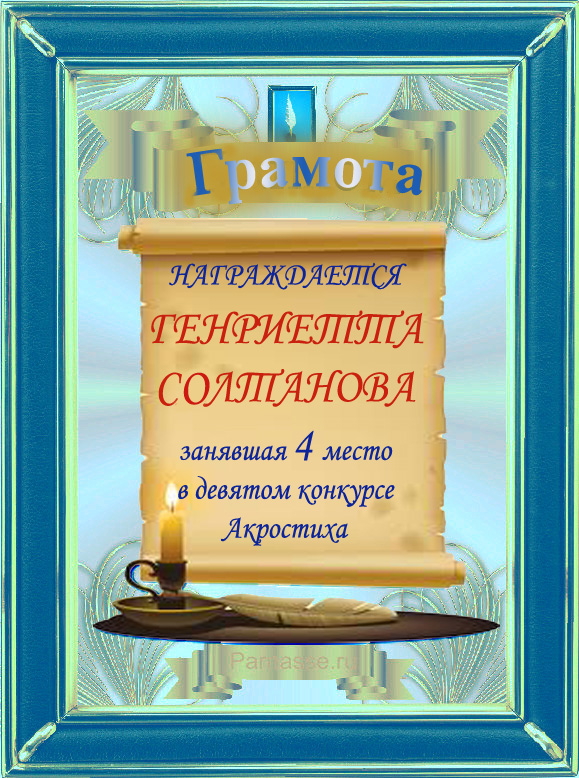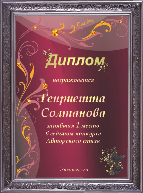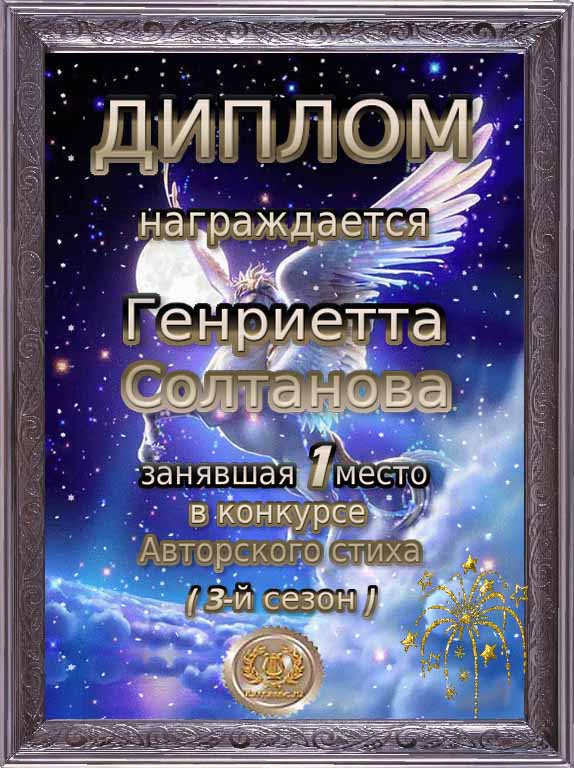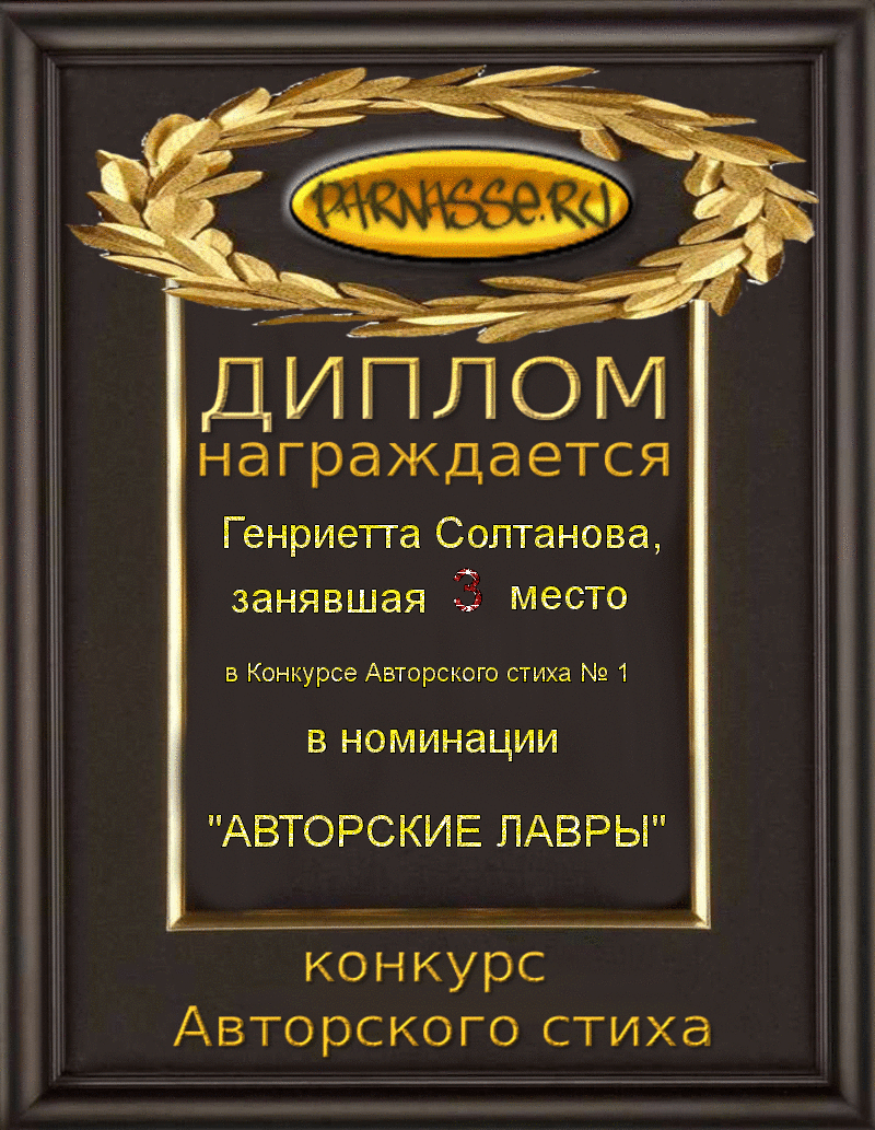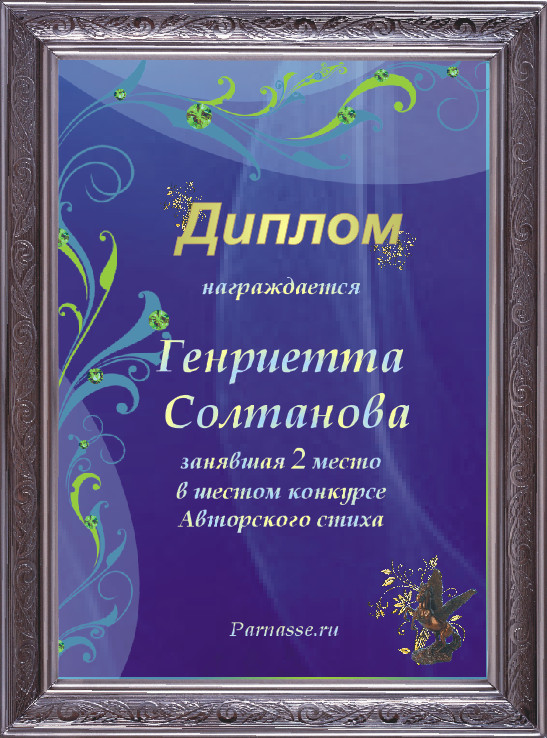 ![]() ![]() ![]() ![]() Медаль за ВТОРОЕ место в конкурсе авторского стиха!