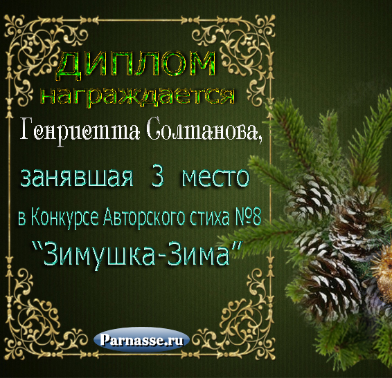 От лица Администрации творческого портала "Парнас" вручаем Вам этот памятный знак с самыми наилучшими пожеланиями! Пусть Вас весь год не покидает творческий запал, удача, а здоровье будет столь же крепким и нерушимым, как и традиция Новогоднего праздника! Счастья, успехов и любви Вам и Вашей семье, друзьям и близким!