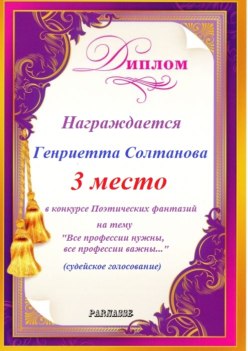 ![]() Медаль за 3 место в конкурсе Поэтических фантазий