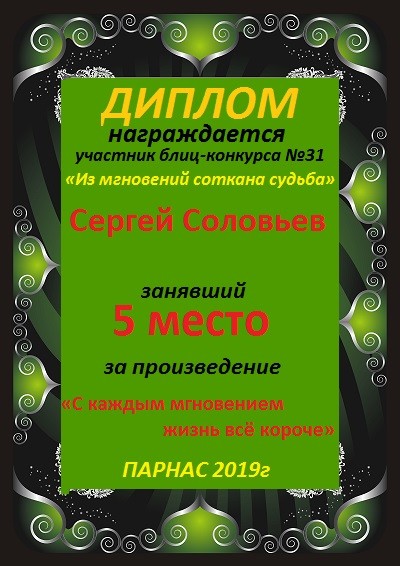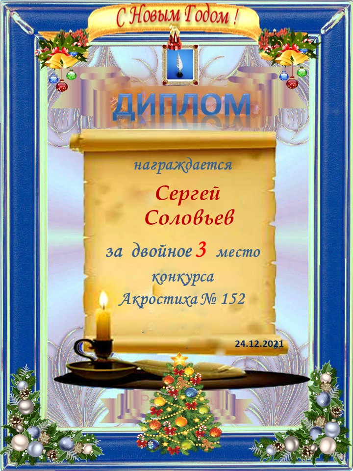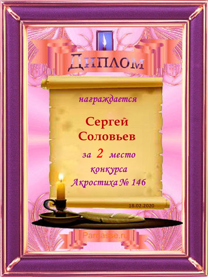 Диплом за 3 место в 146 конкурсе АКРОСТИХА (Альтернатива)! ПОЗДРАВЛЯЮ!