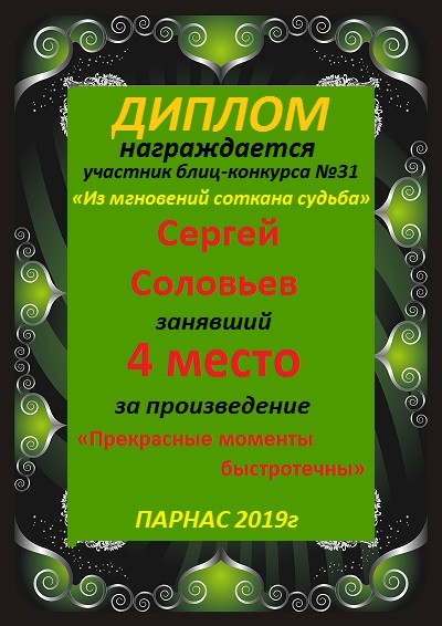 Грамота за 4 место в 152 конкурсе АКРОСТИХА (Альтернатива - лимерики)