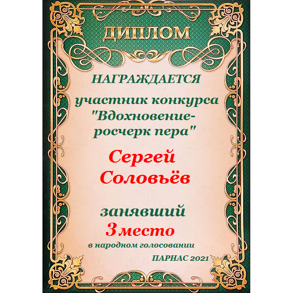 Третье место по итогам литературного конкурса «Ты моё вдохновение», народное голосование. Поздравляем с прекрасной победой!