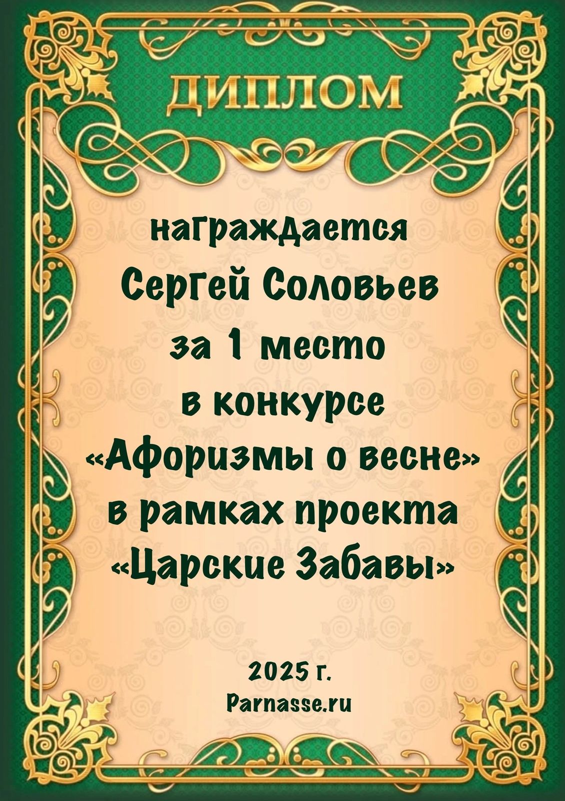 Подарок от: Конкурс "Царские Забавы", 30 апреля 2025: