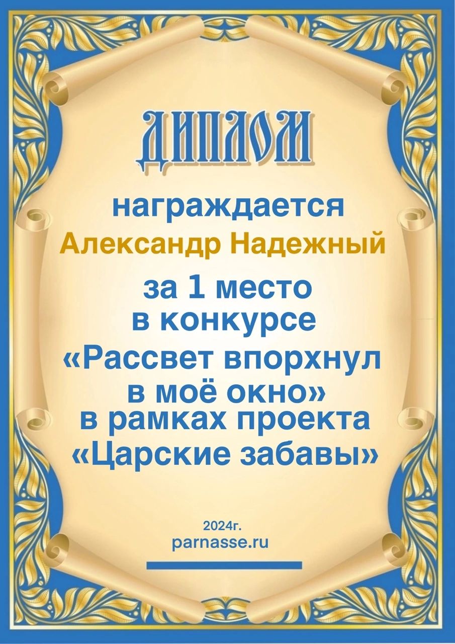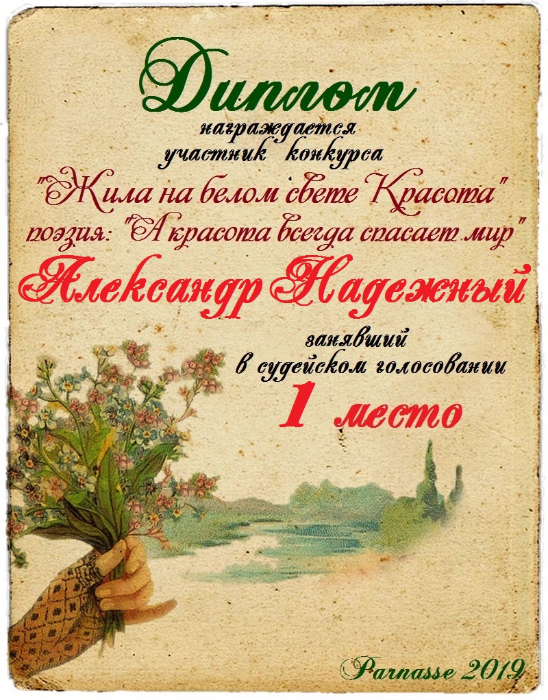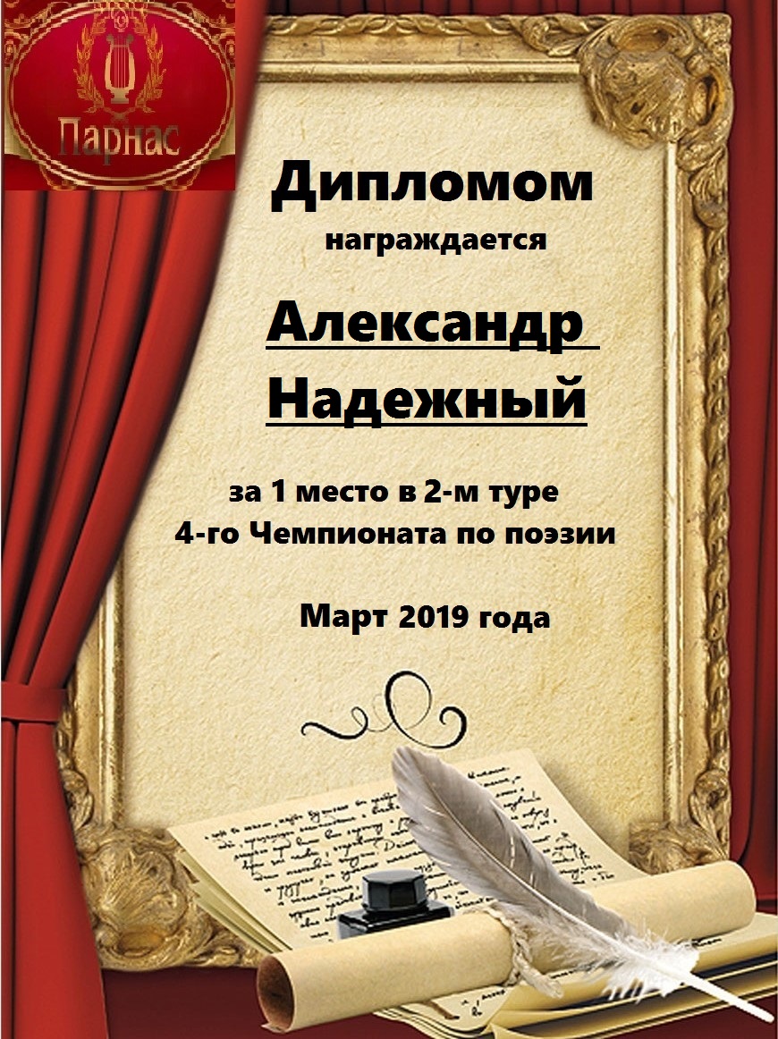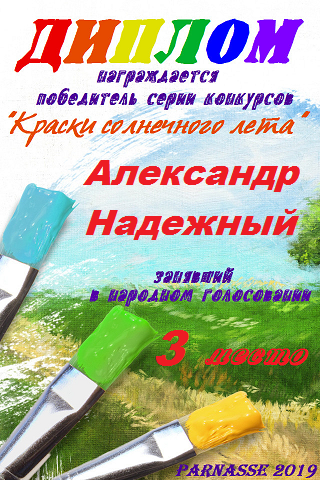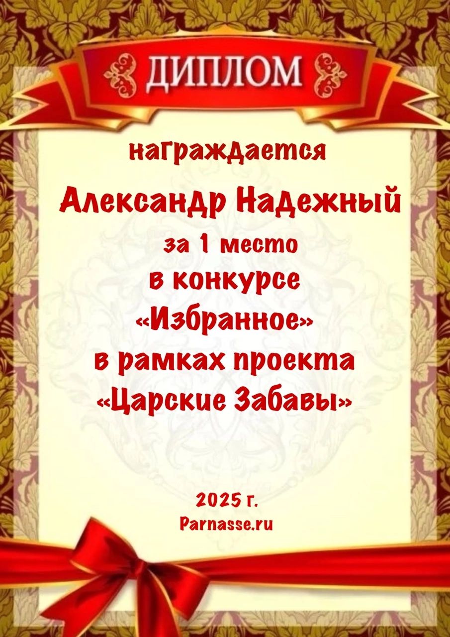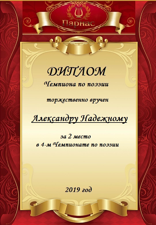 Уважаемый Александр! Сердечно благодарим Вас за материальную и моральную поддержку "Парнасу"! Мы, в свою очередь, желаем Вам здоровья, любви, творческого вдохновения и исполнения всех Ваших желаний! Спасибо за Ваше прекрасное, талантливое творчество!