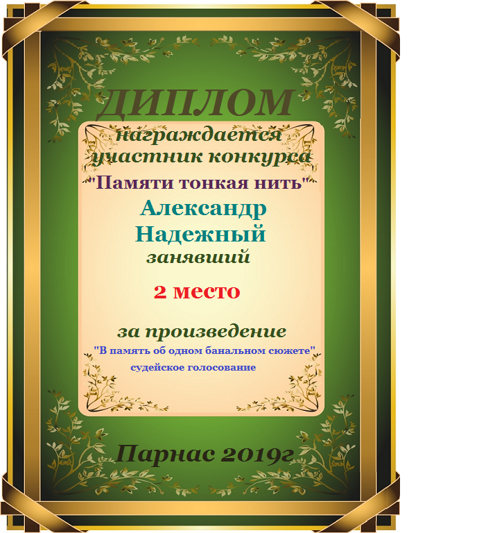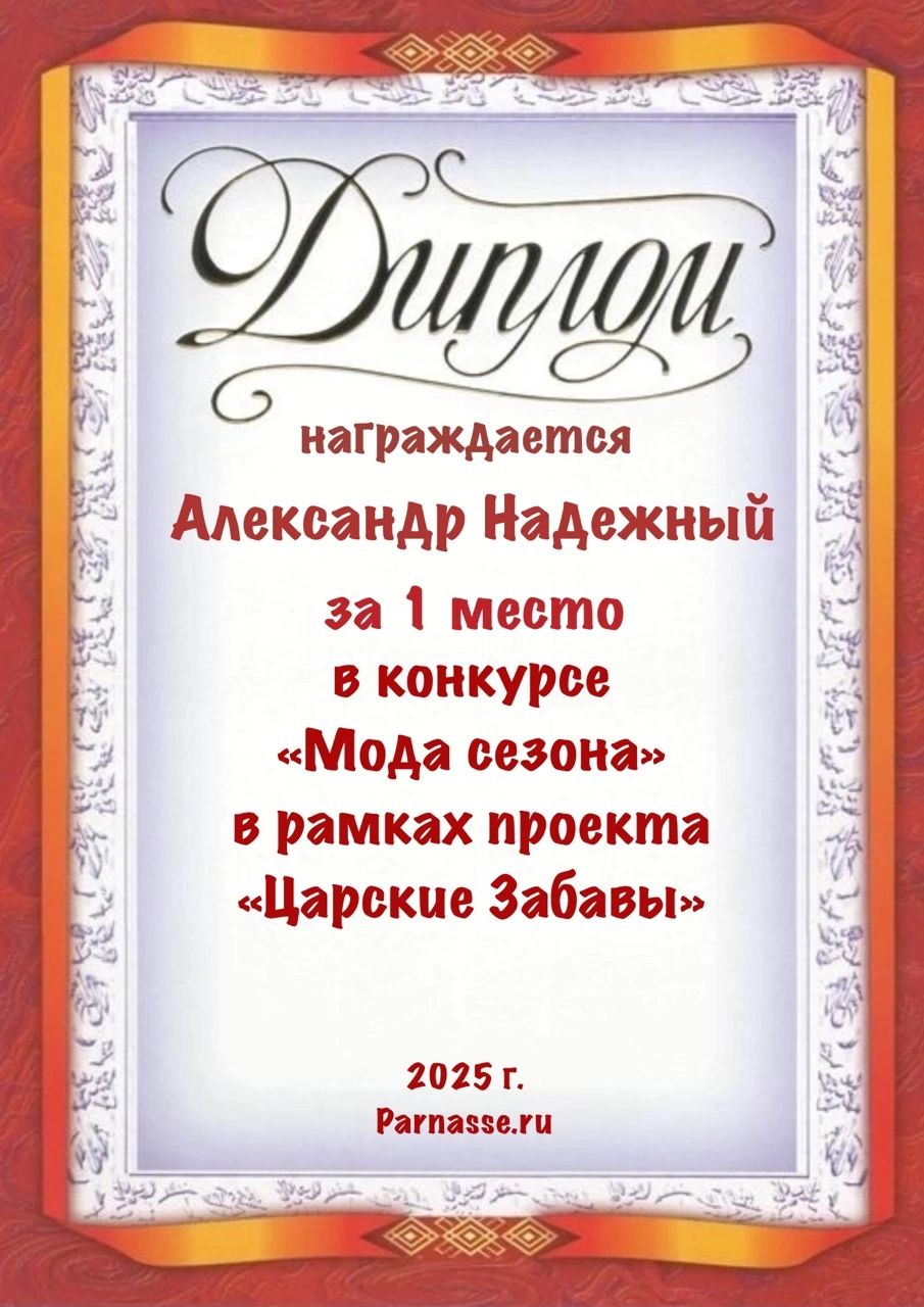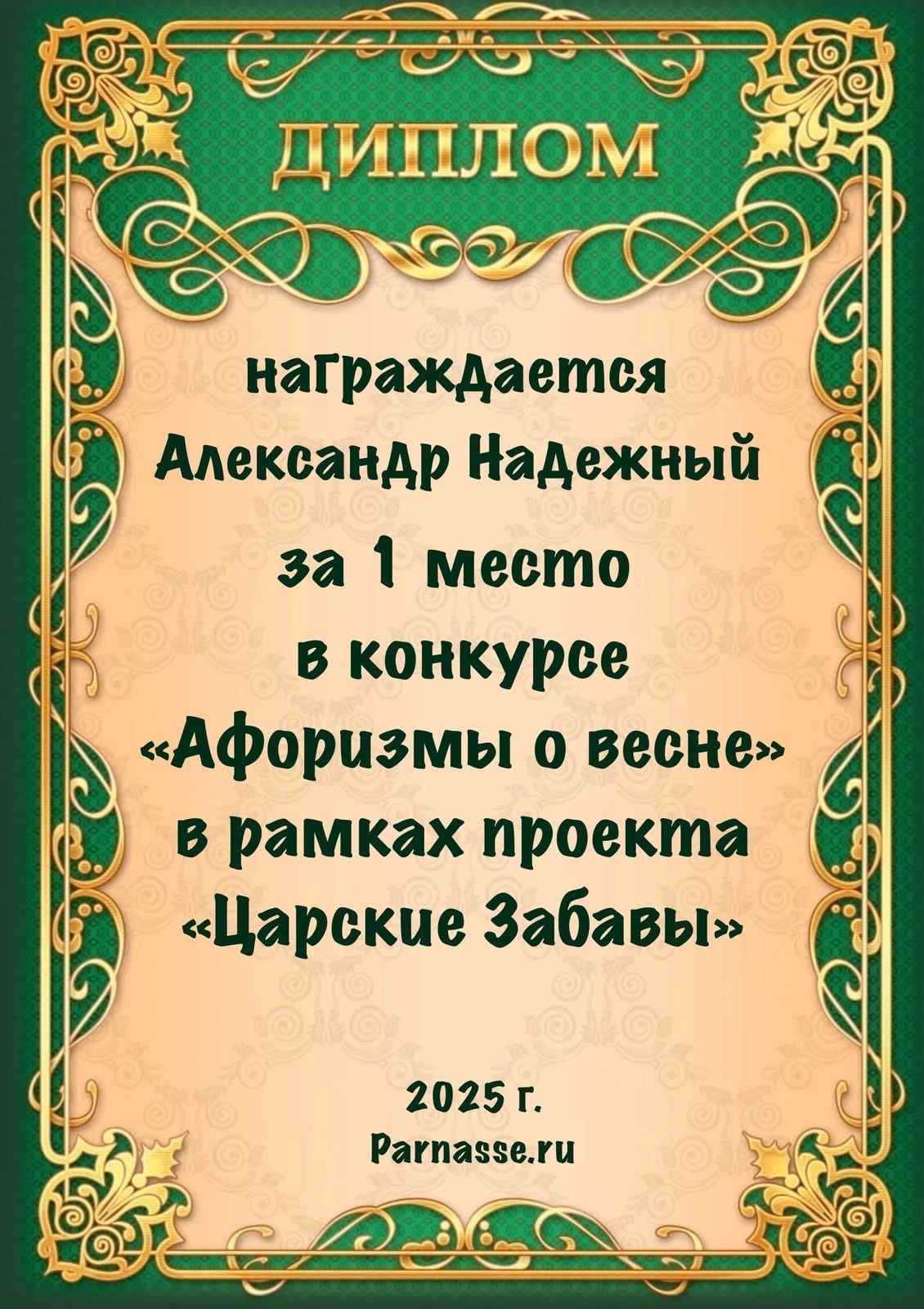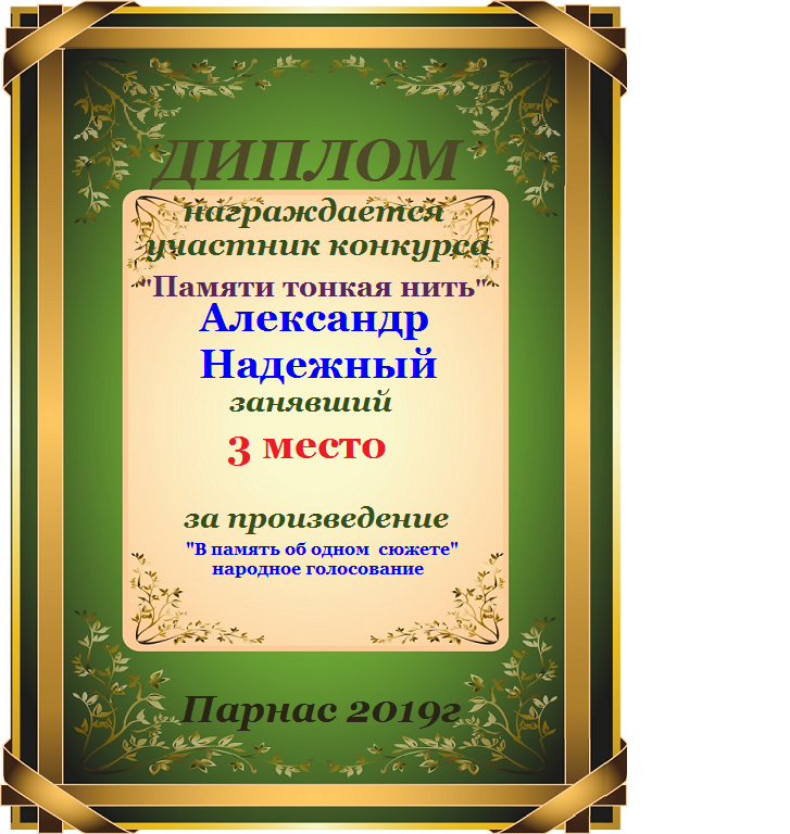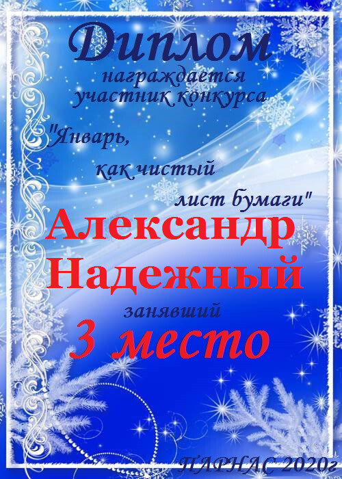 Уважаемый Александр! Сердечно благодарим Вас за материальную и моральную поддержку "Парнасу"! Мы, в свою очередь, желаем Вам здоровья, любви, творческого вдохновения и исполнения всех Ваших желаний! Спасибо за Ваше прекрасное, талантливое творчество!