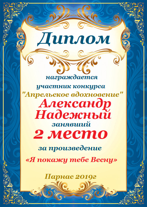 Второе место в конкурсе "Апрельское вдохновение", судейское голосование. Поздравляем с прекрасной победой!