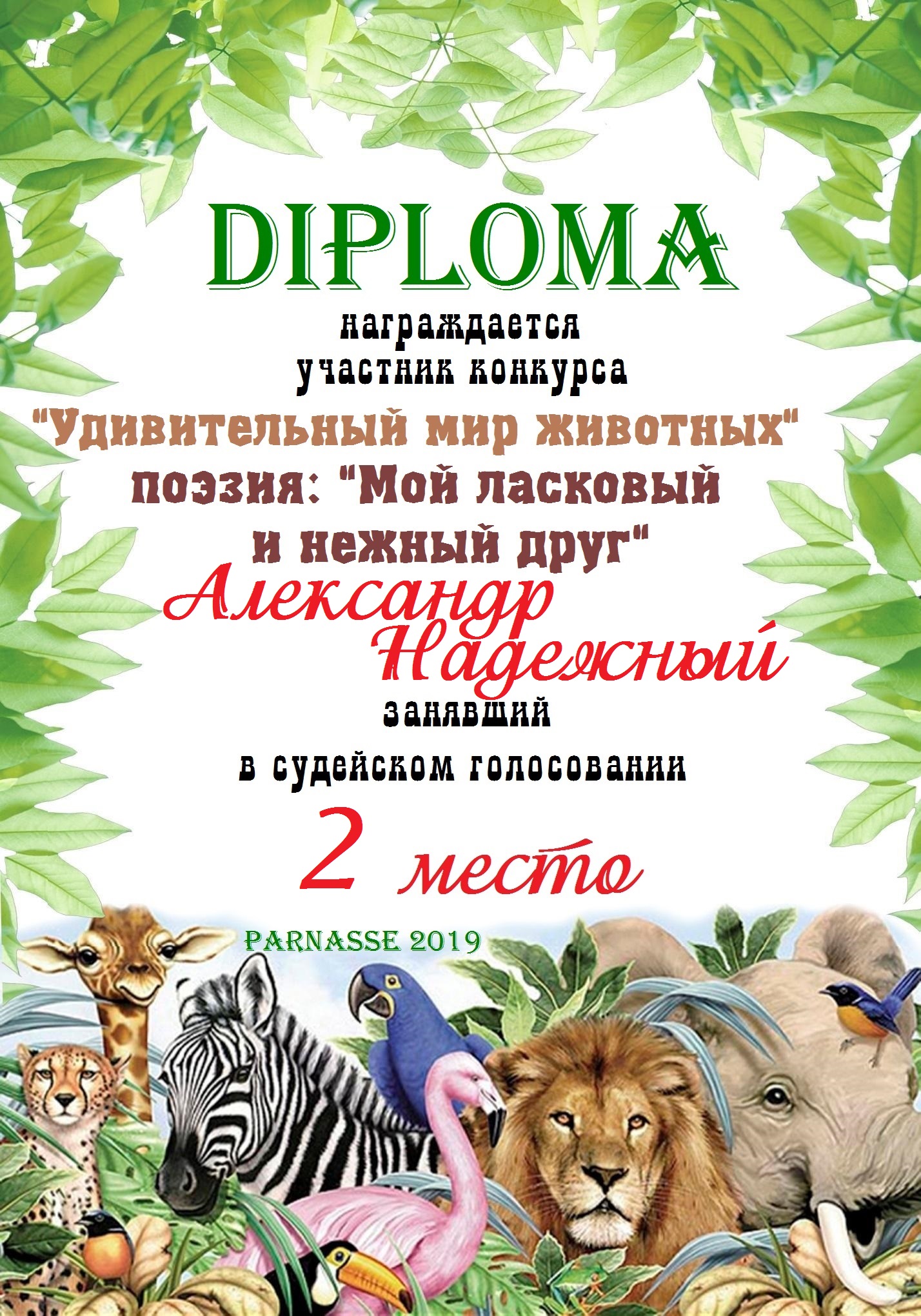 Пятое место в 4-м туре Второго Поэтического Турнира "Домашние и дикие" за произведение «Я видел его недолго». Поздравляем!