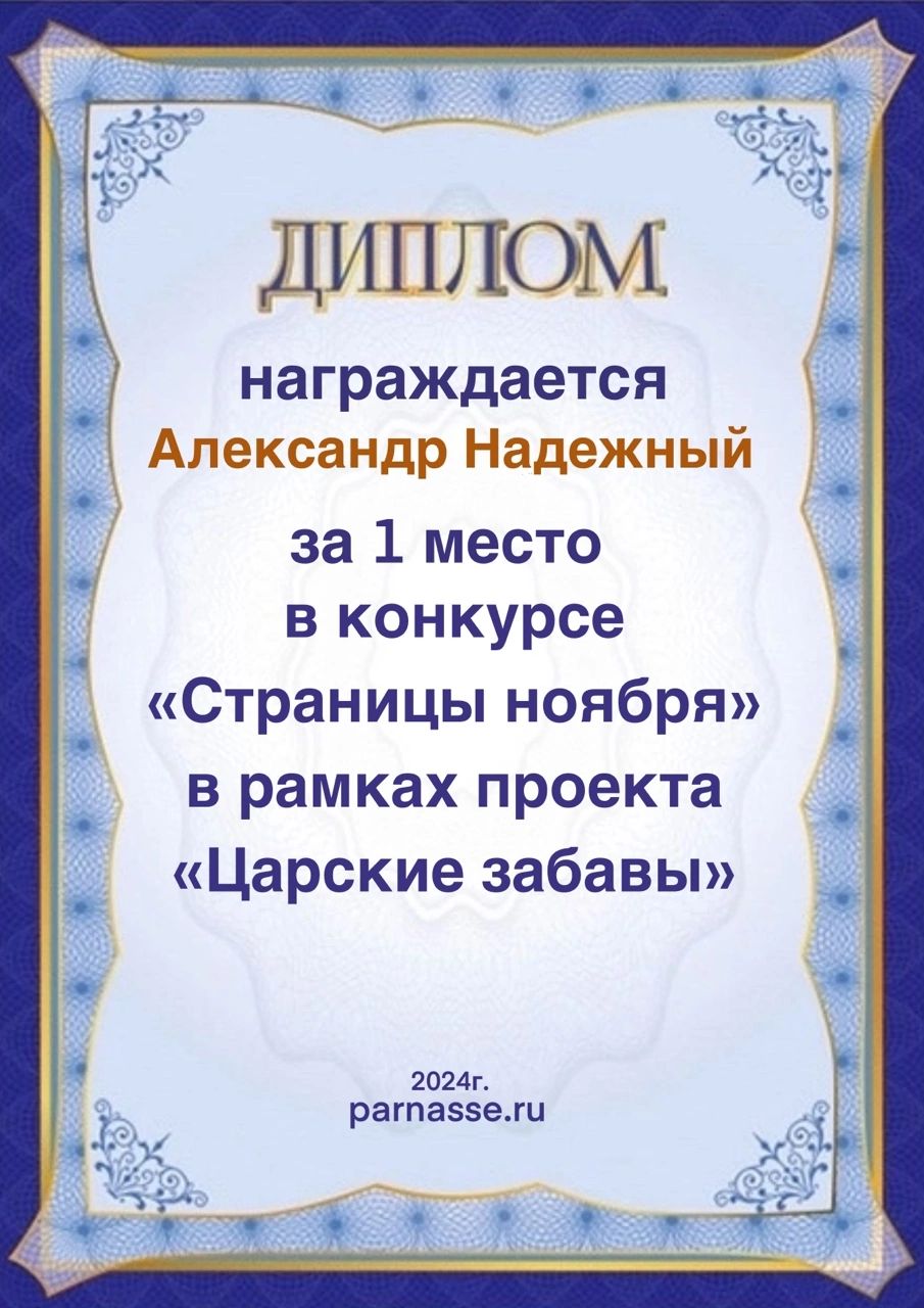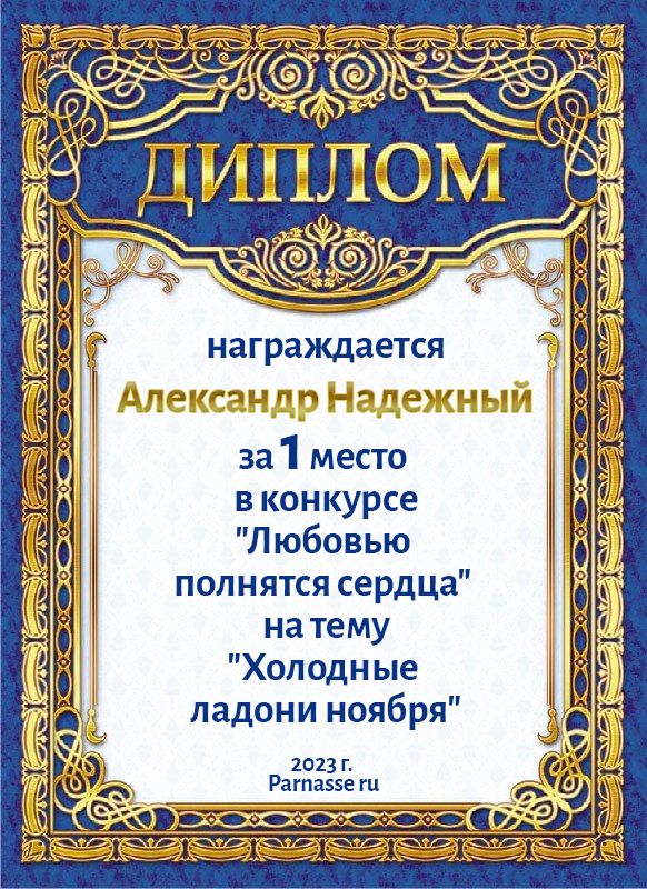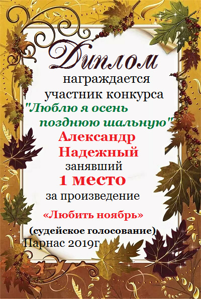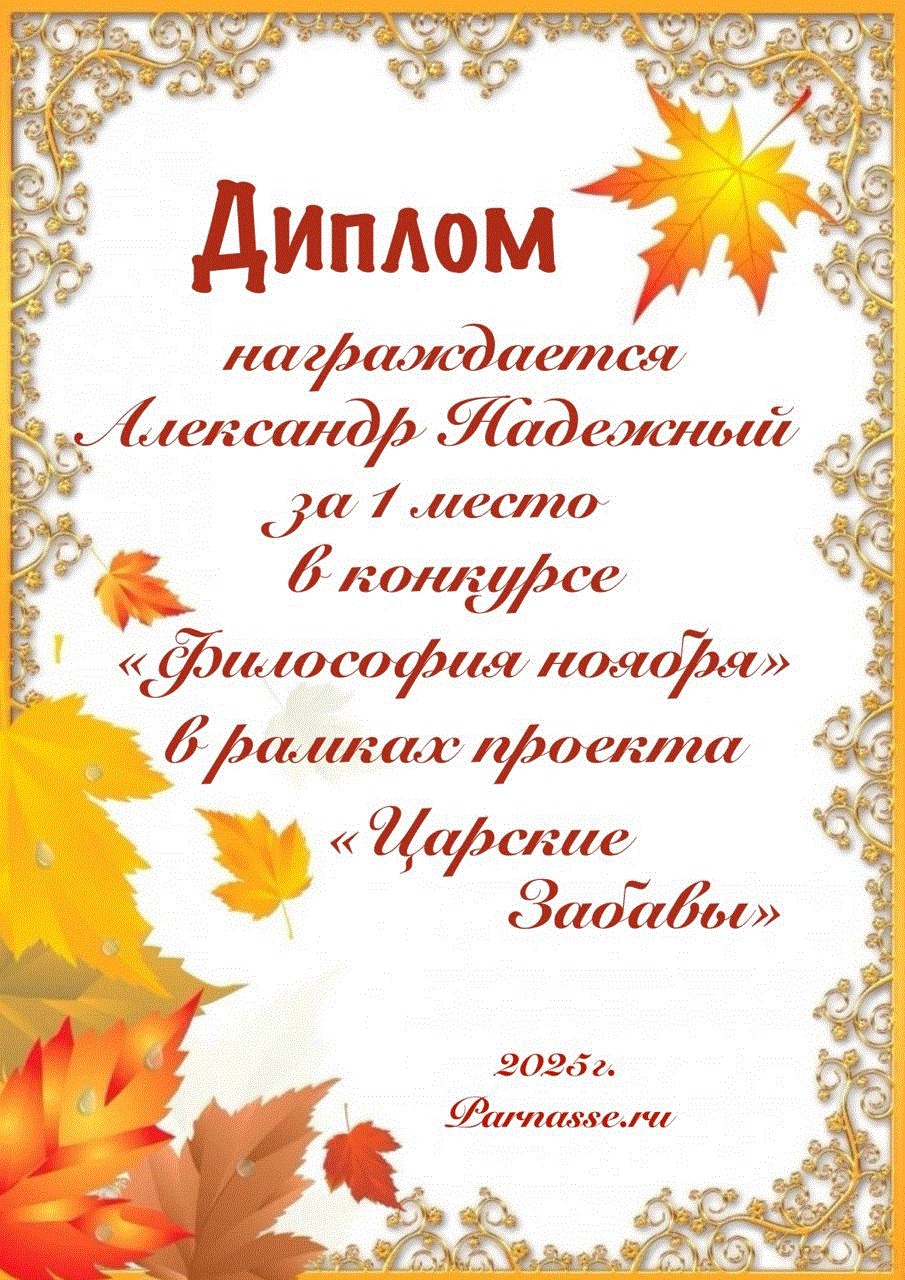Медаль от ведущей конкурса "Философия ноября" за поэтический талант в раскрытии темы стихотворения!