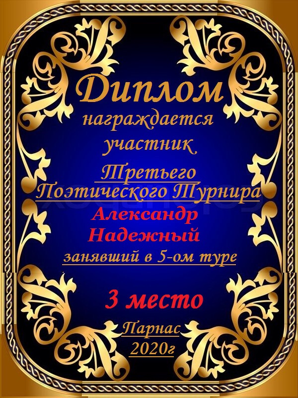 Третье место в 3-м туре Второго Поэтического Турнира "Любовь многогранна" за произведение «Прости». Поздравляем!