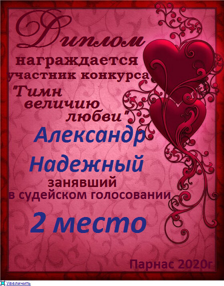 1 место в конкурсе "Поэзия чувств". Поздравляем!