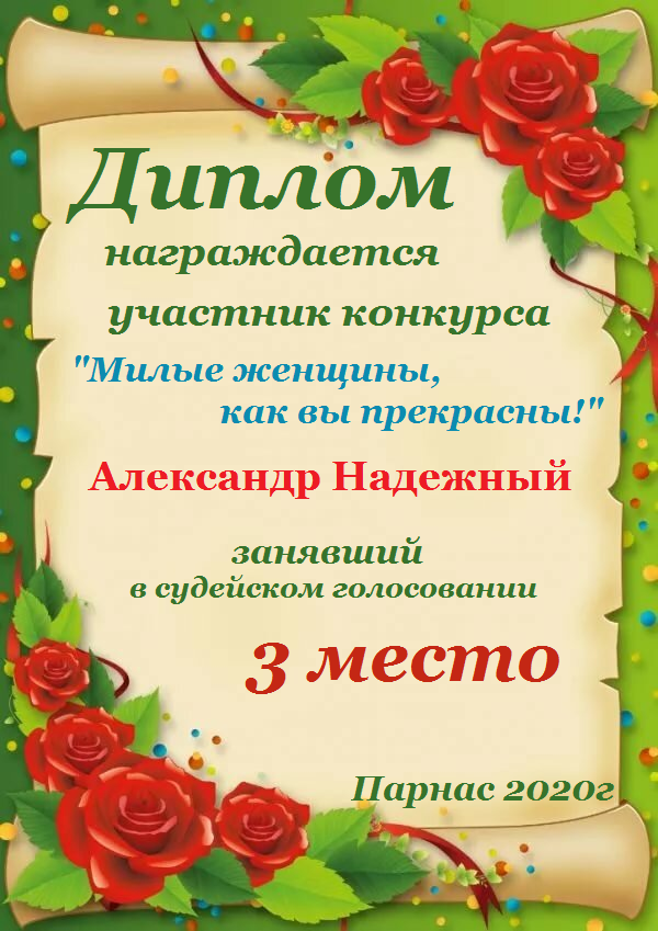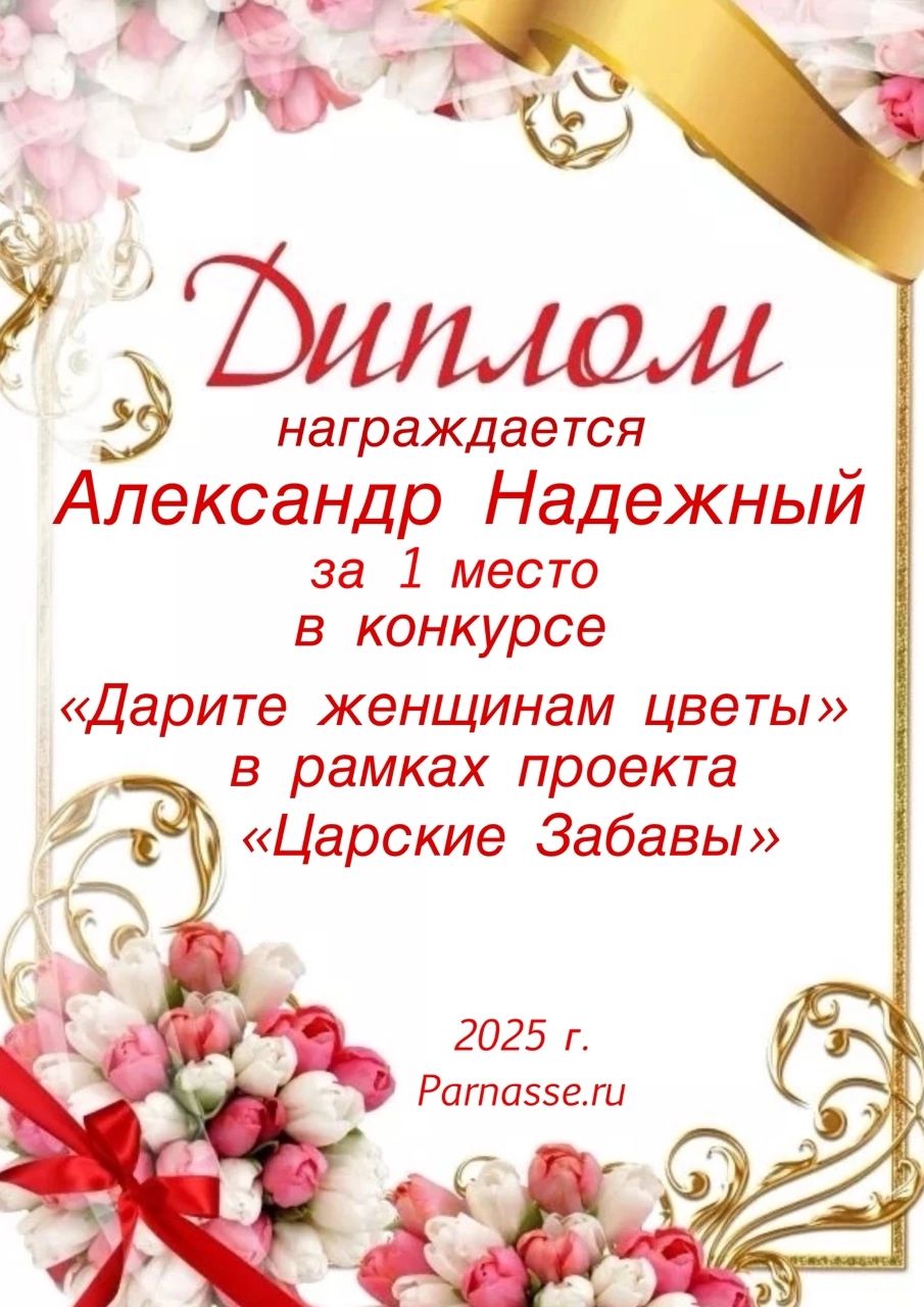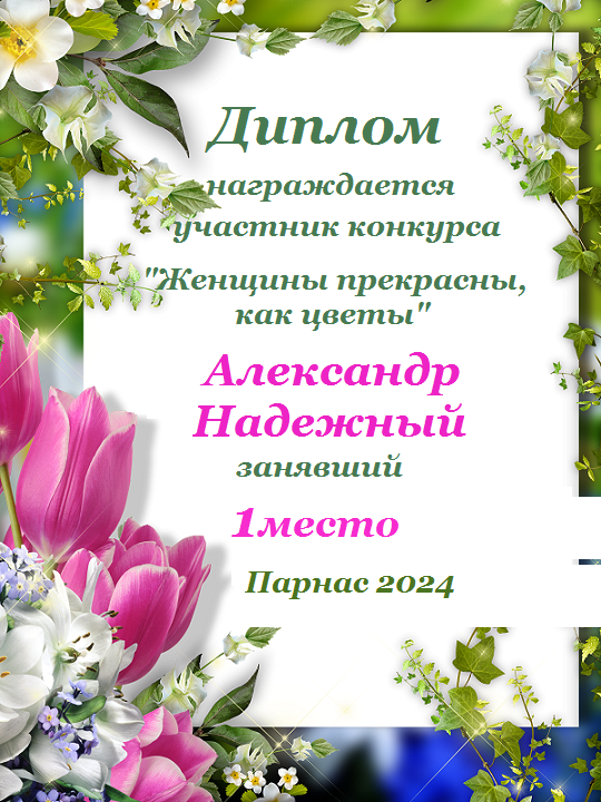 ВТОРОЕ место в конкурсе "Букет к 8 Марта" в поэтической номинации "Поэзия: Все цветы на земле для Неё", судейское голосование. Поздравляем с прекрасной Победой!