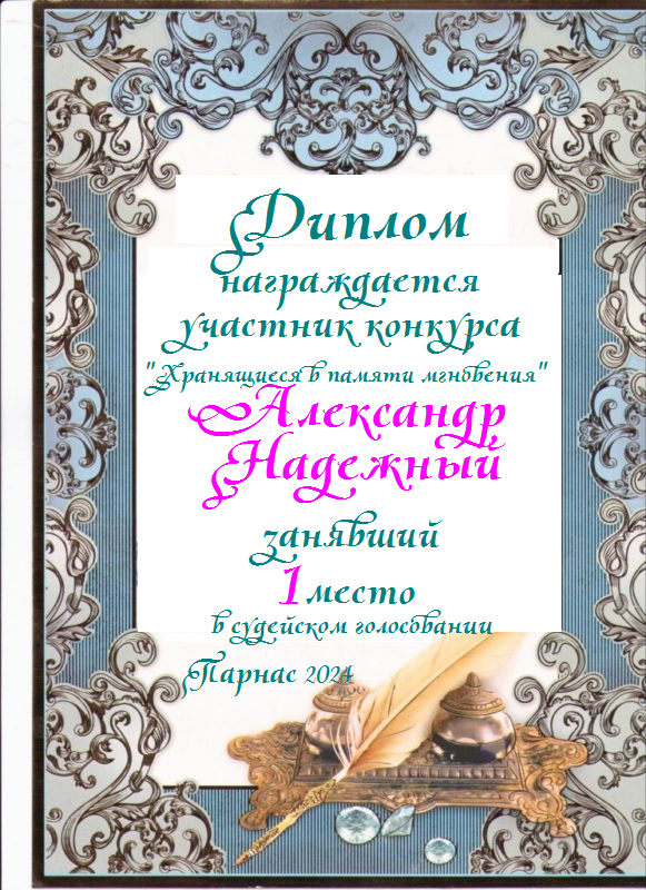 Медаль от ведущей конкурса "Избранное" за профессионализм и талант, за яркость и сюжетность стихов!