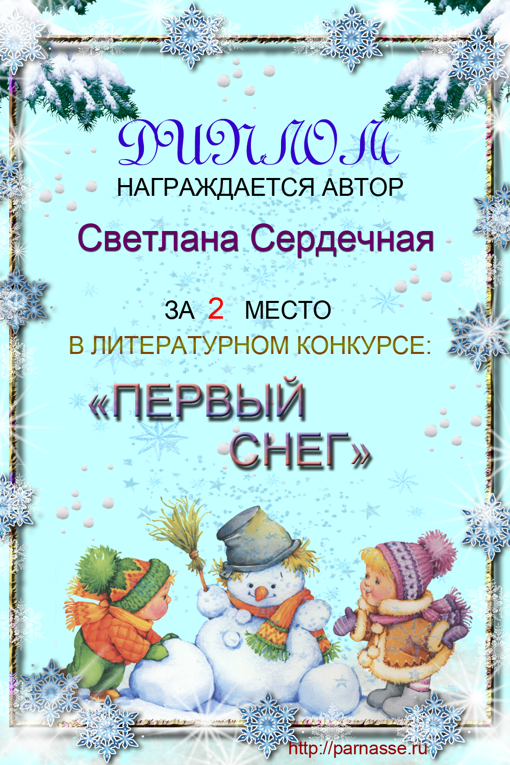От лица Администрации творческого портала "Парнас" вручаем Вам этот памятный знак с самыми наилучшими пожеланиями! Пусть Вас весь год не покидает творческий запал, удача, а здоровье будет столь же крепким и нерушимым, как и традиция Новогоднего праздника! Счастья, успехов и любви Вам и Вашей семье, друзьям и близким!