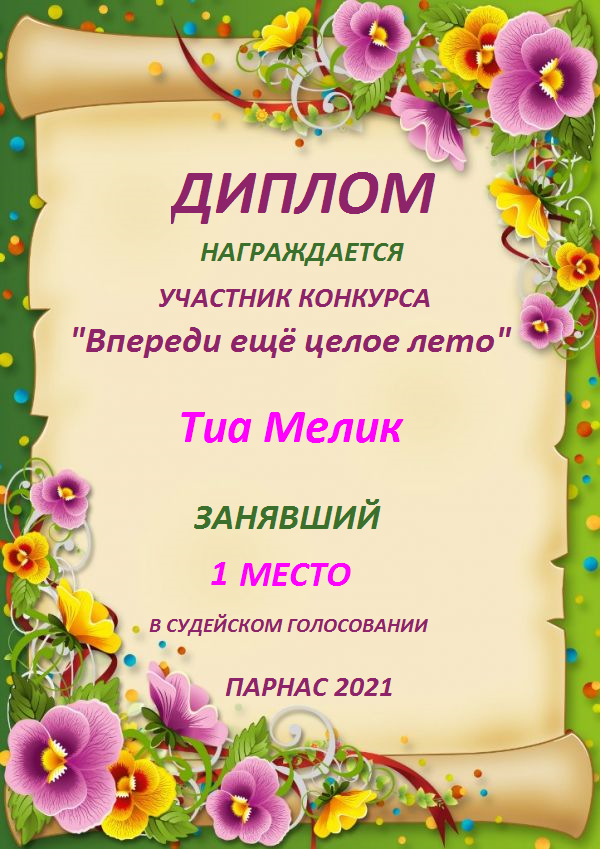 Первое место в судейском голосовании по итогам конкурса "Впереди ещё целое лето"