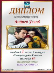 Поздравляю с занятым 1 местом в конкурсе "ЛитКомета - Полёт № 97" - Номинация Проза!