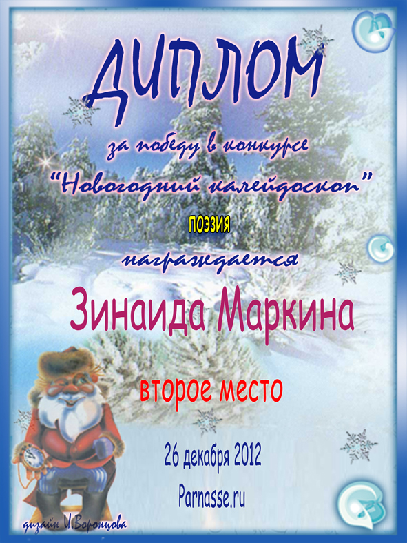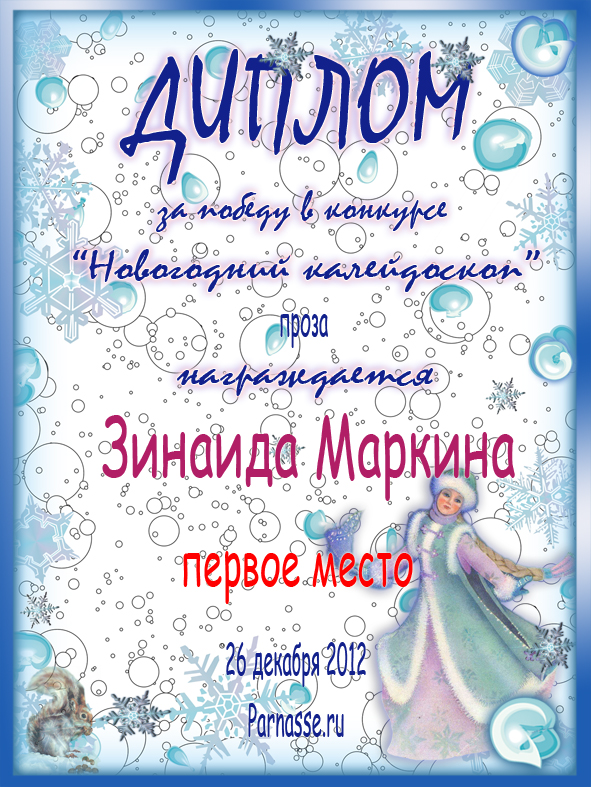 Диплом победителя в конкурсе "Новогодний калейдоскоп!"