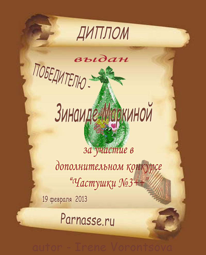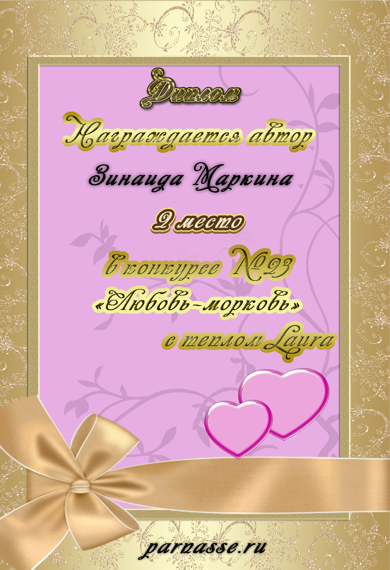 Диплом за 3 место в конкурсе "Дню всех Влюблённых посвящая"