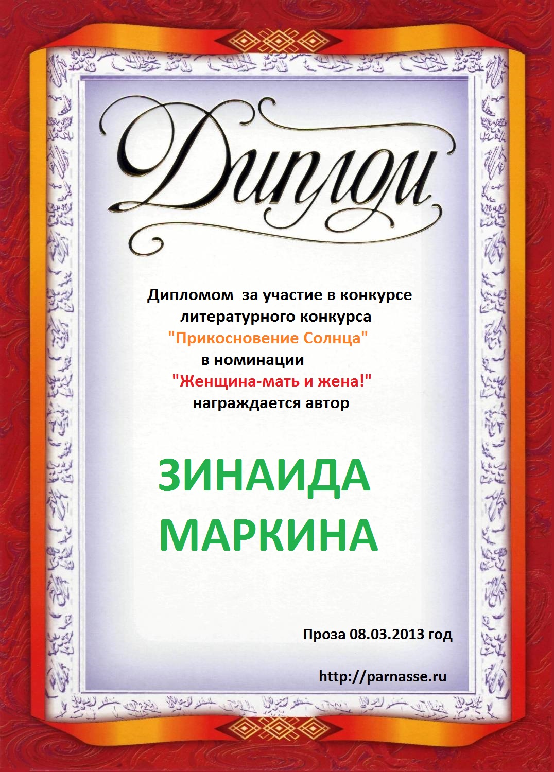 Диплом в конкурсе поэзии "Прикосновение Солнца"