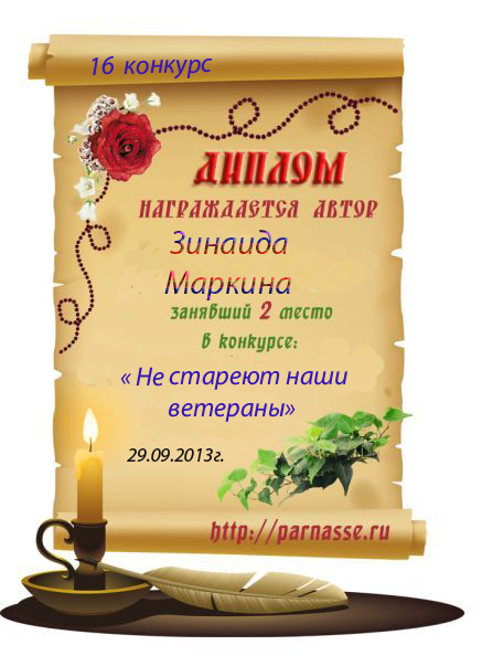 Диплом за 2 место в конкурсе "Не стареют наши ветераны"