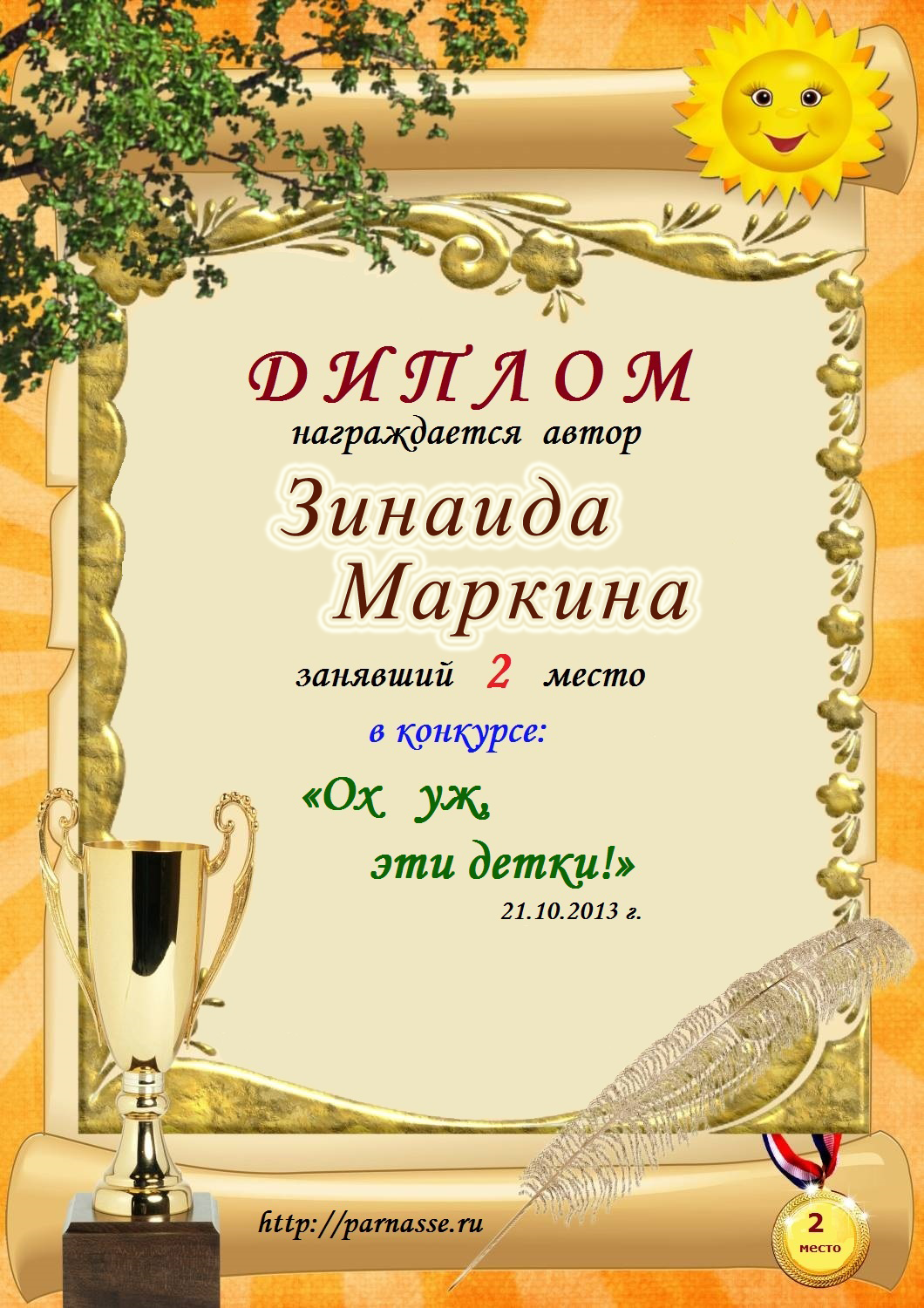 Диплом за 2 место в конкурсе " С юмором. о наболевшем"