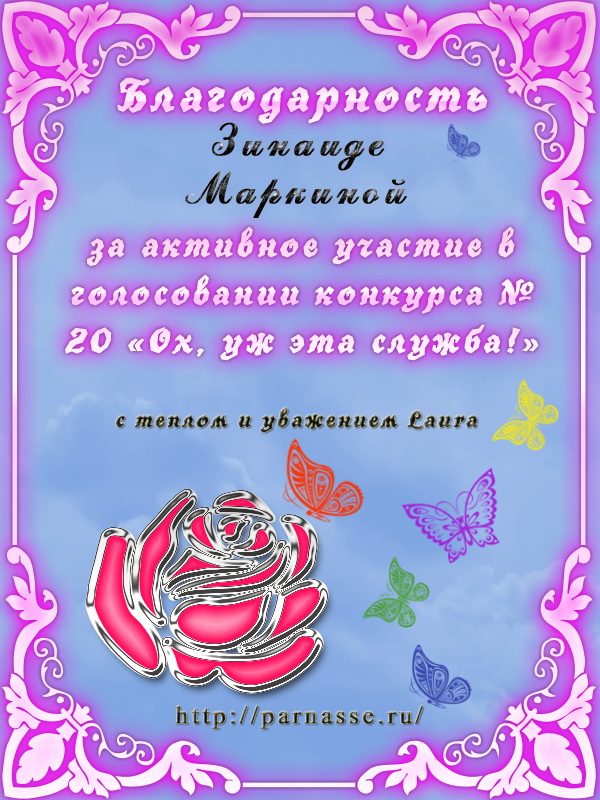 Благодарю за участие и поддержку конкурса! Желаю творческих успехов и удач!