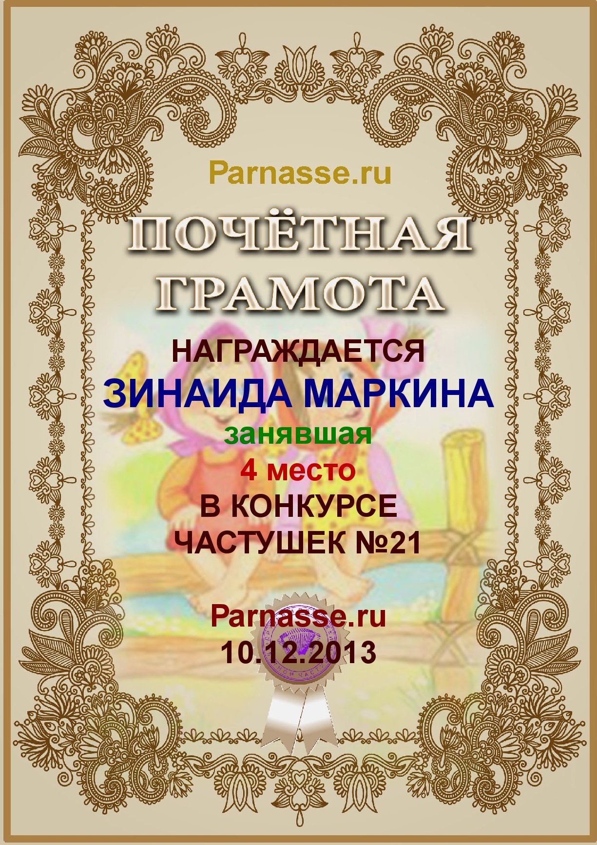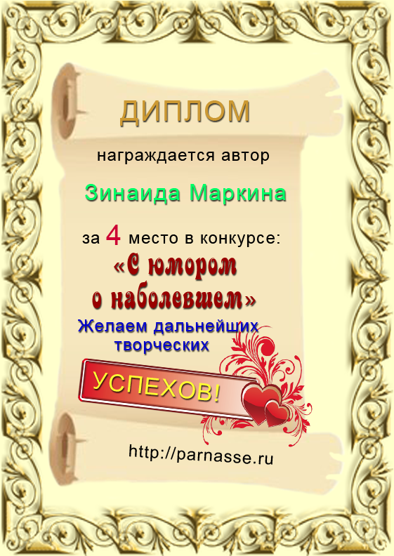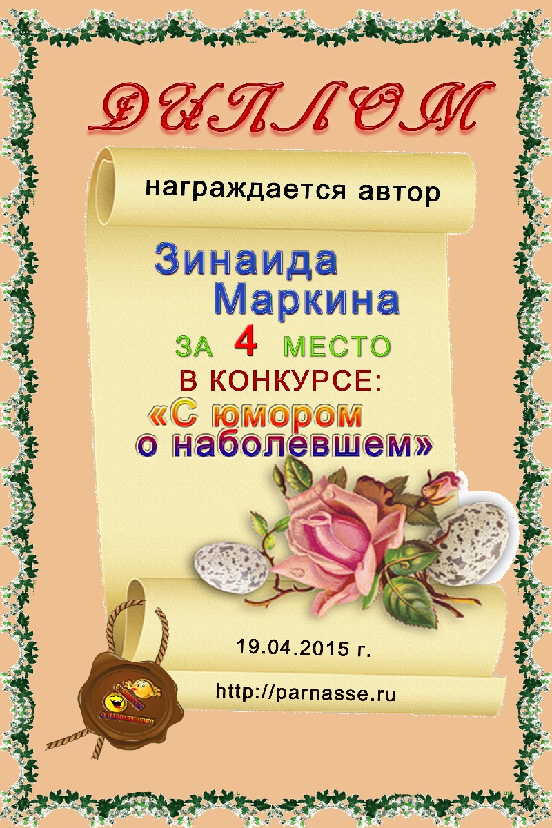 Диплом за 4 место в конкурсе " С юмором. о наболевшем"