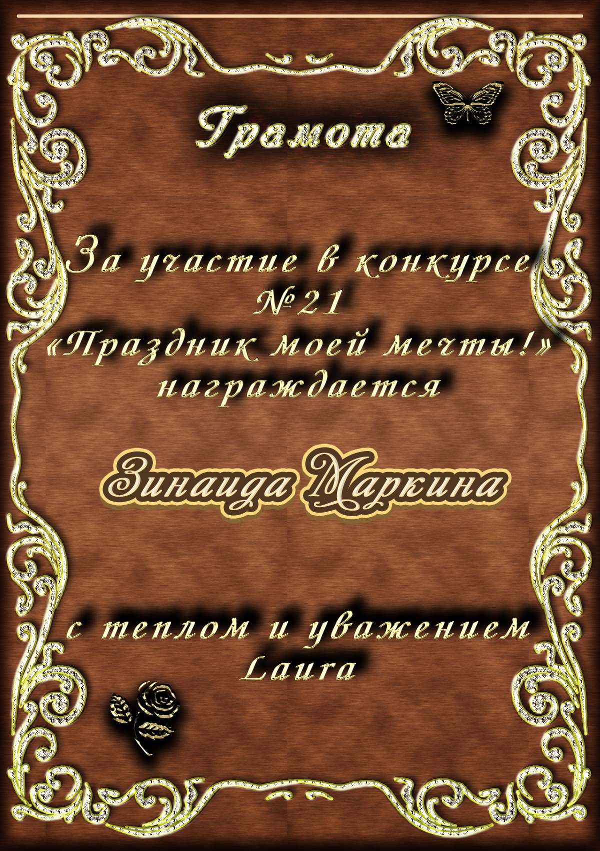За участие в номинации "Рецепты в прозе: Кушать подано". Всего Вам самого наилучшего, светлого и доброго!