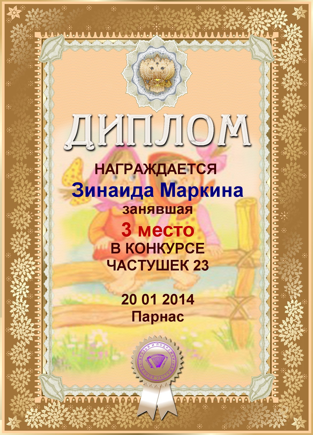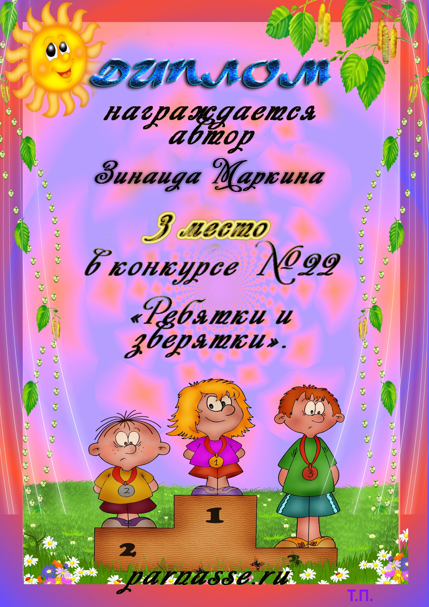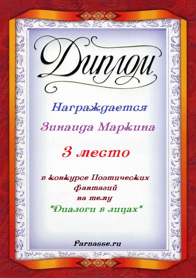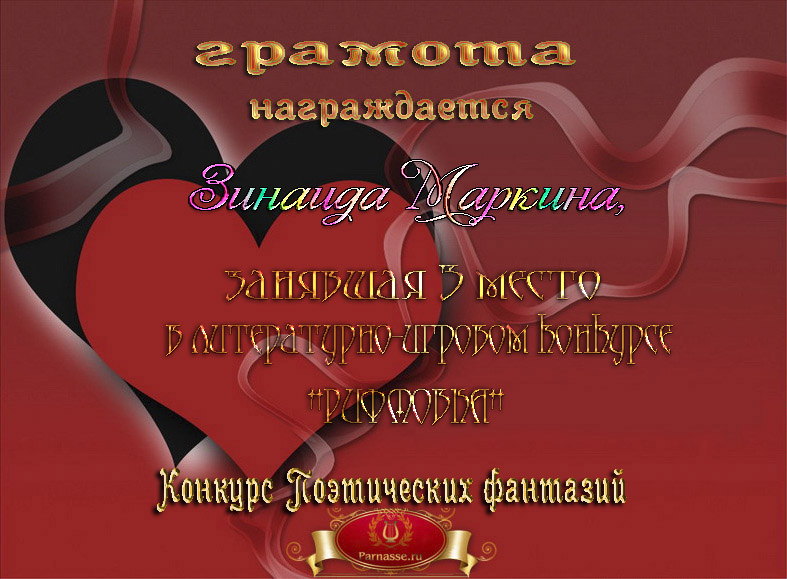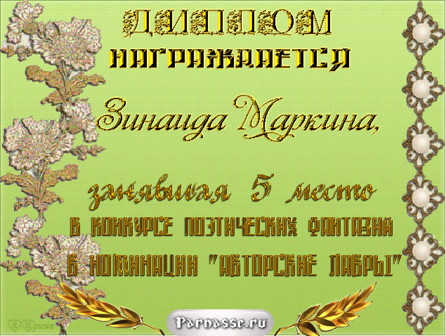 ![]() медаль за 3 место в конкурсе Поэтических фантази