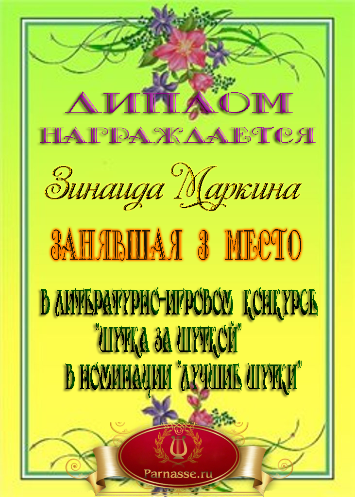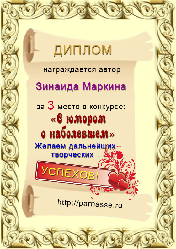Диплом за 3 место в конкурсе " С юмором. о наболевшем"