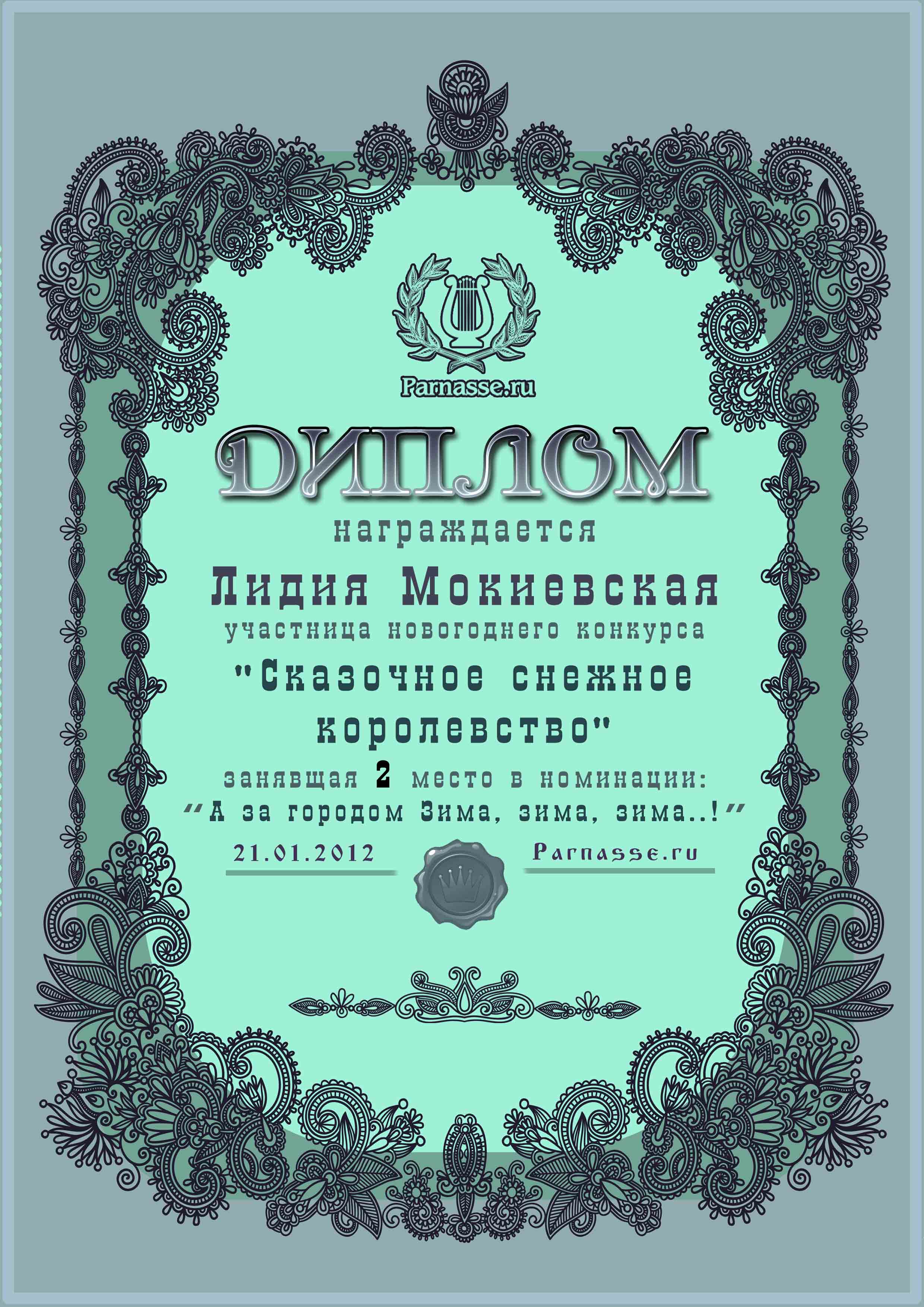 Диплом лауреата II степени сетевого литературного конкурса