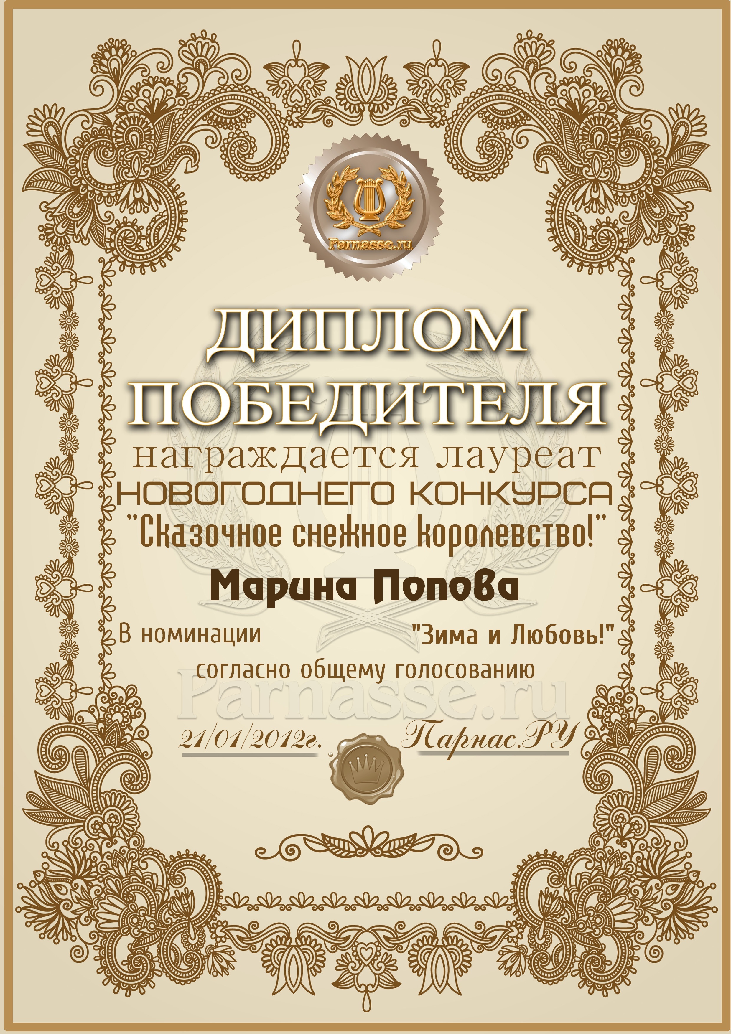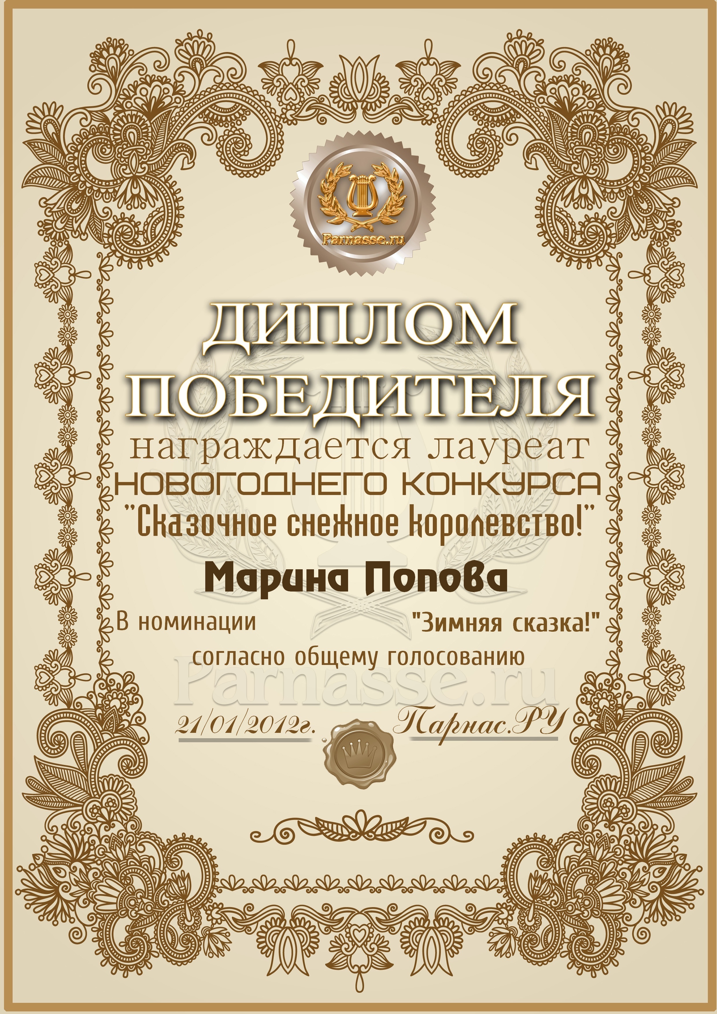 Диплом за 1 место в фотоконкурсе "Чудес морозных очарование"