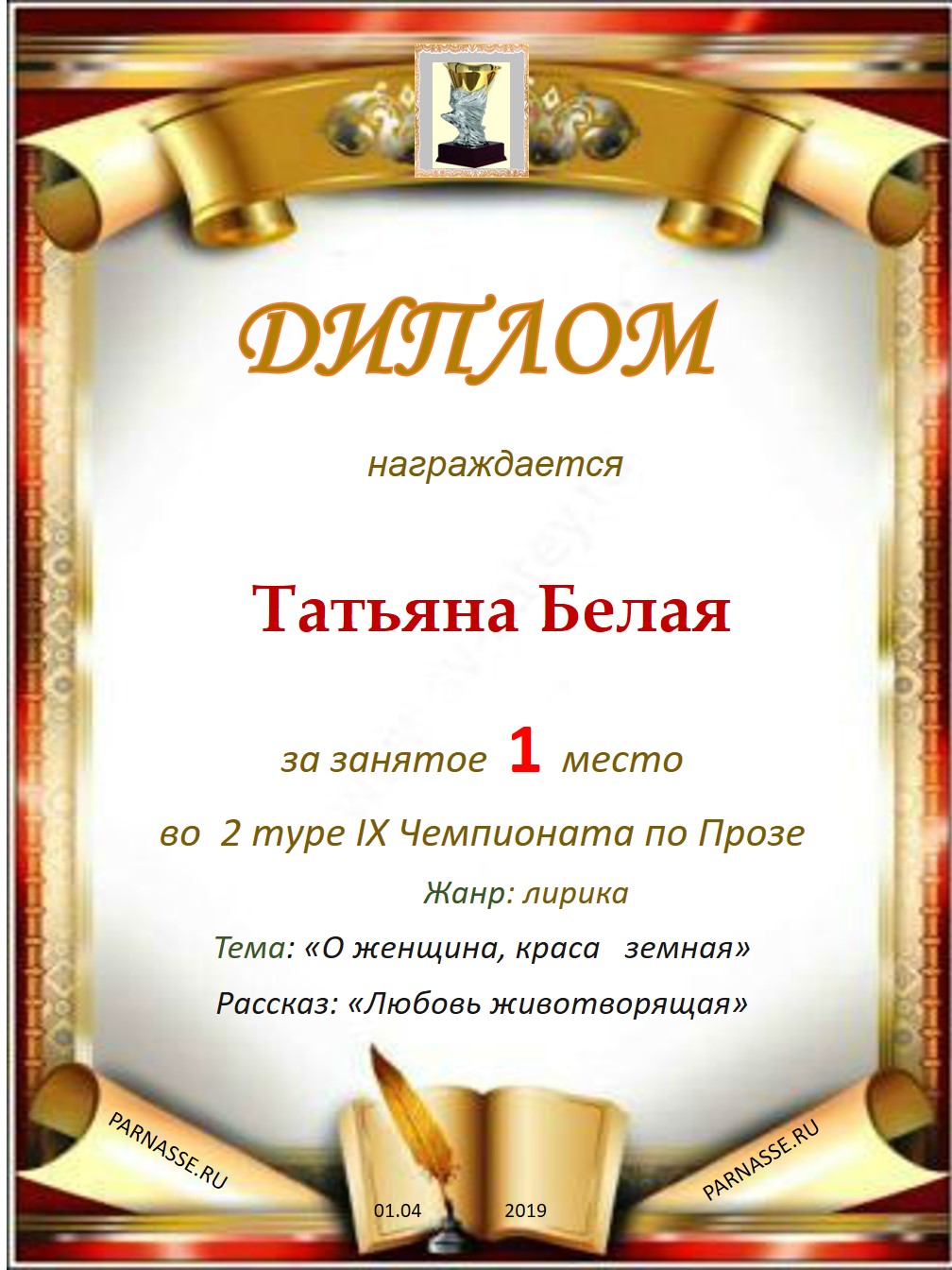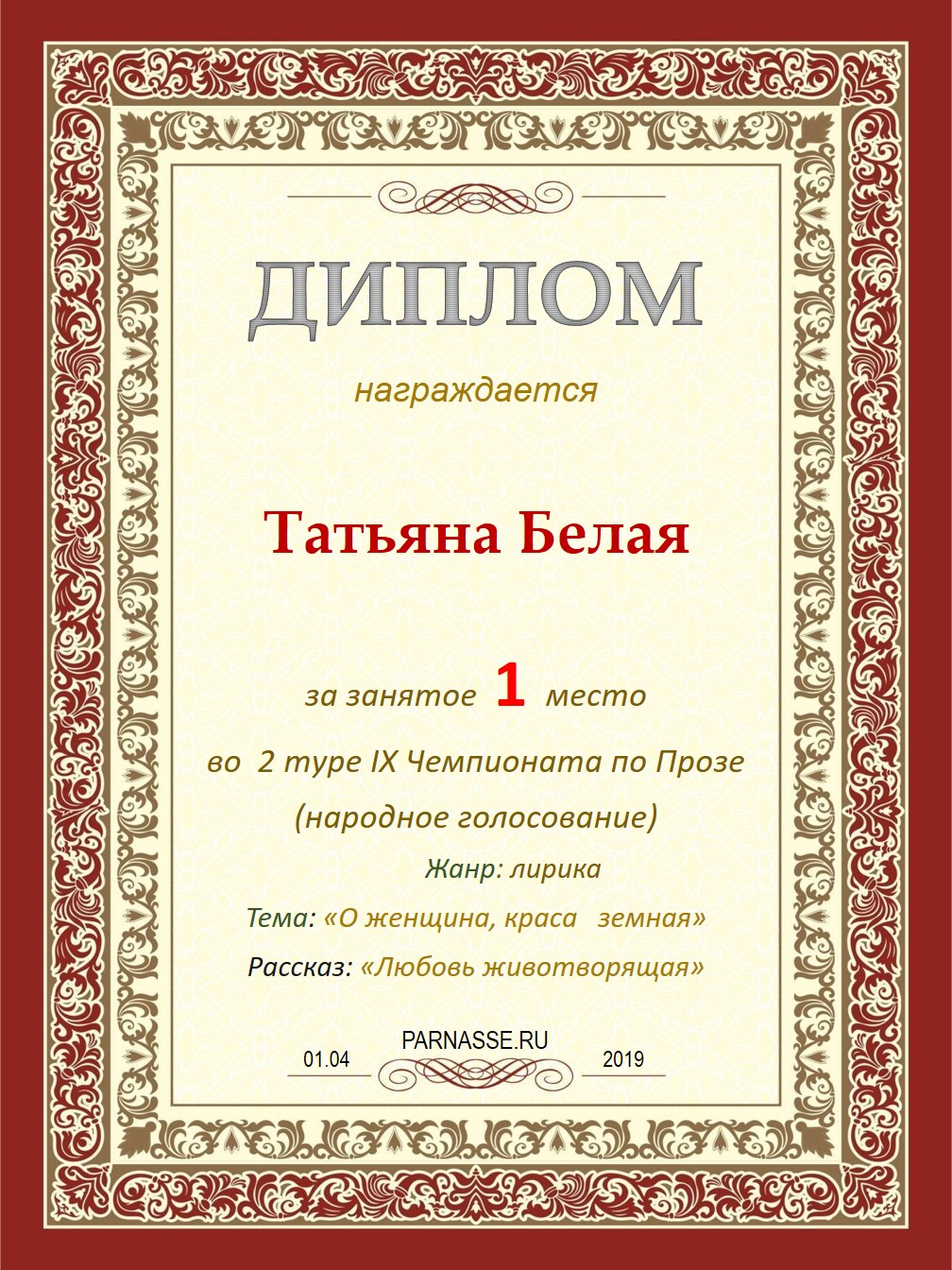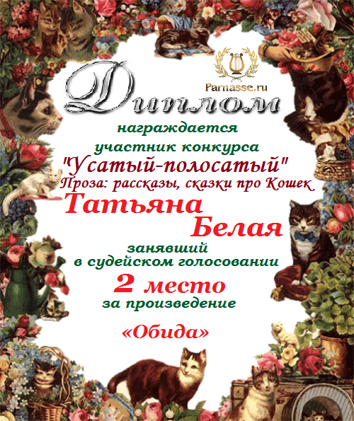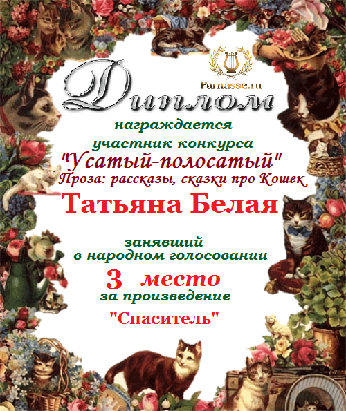 Первое место по итогам конкурса "Мой нежный и ласковый друг"